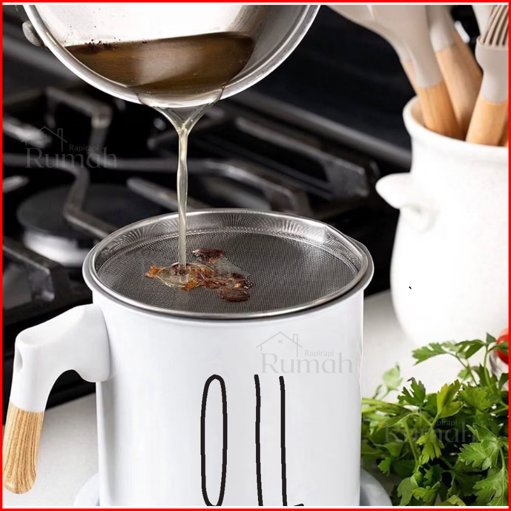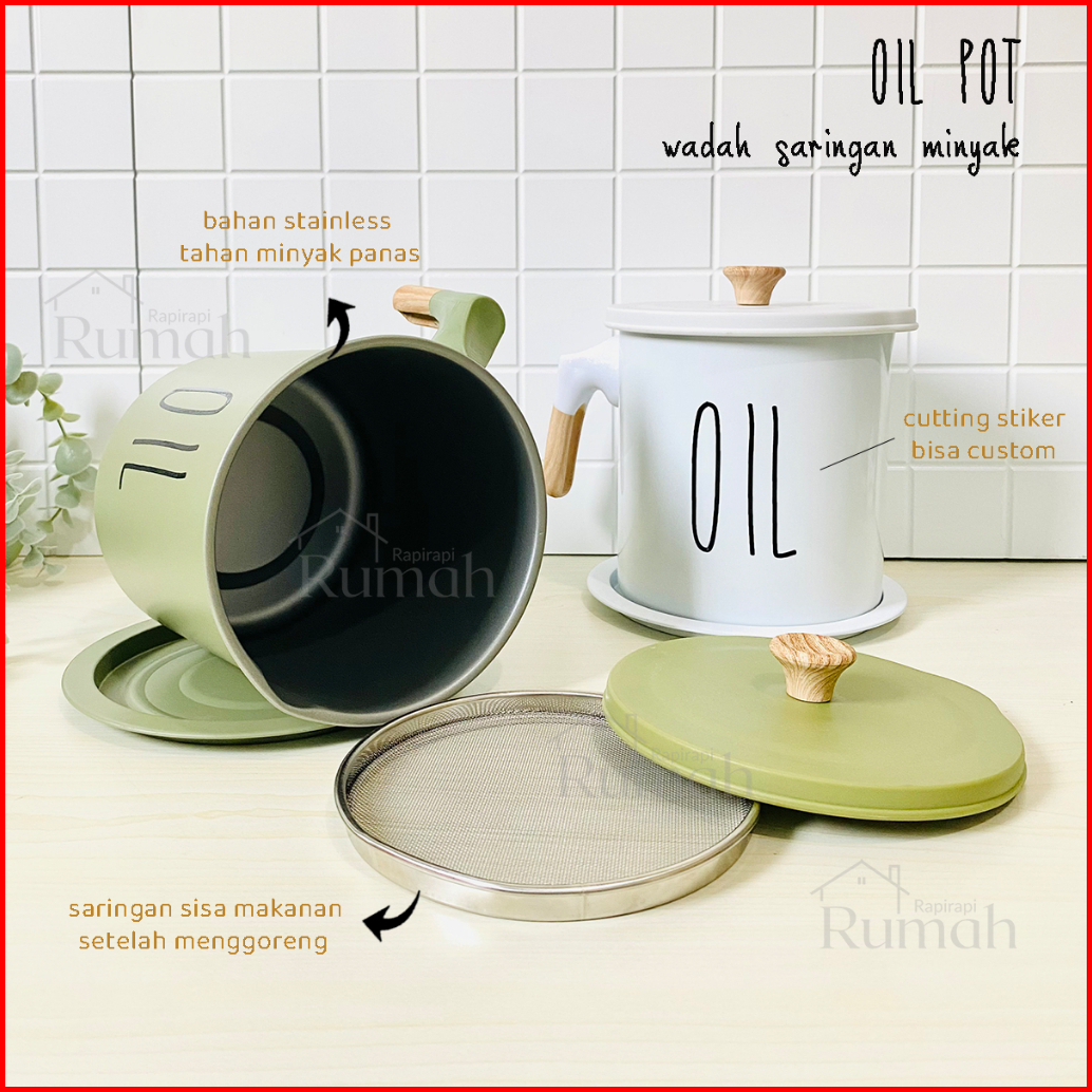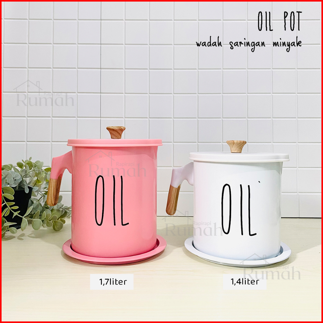 Oil Pot Wadah Saringan Minyak Goreng Stainless Putih Kayu Pink Hijau
