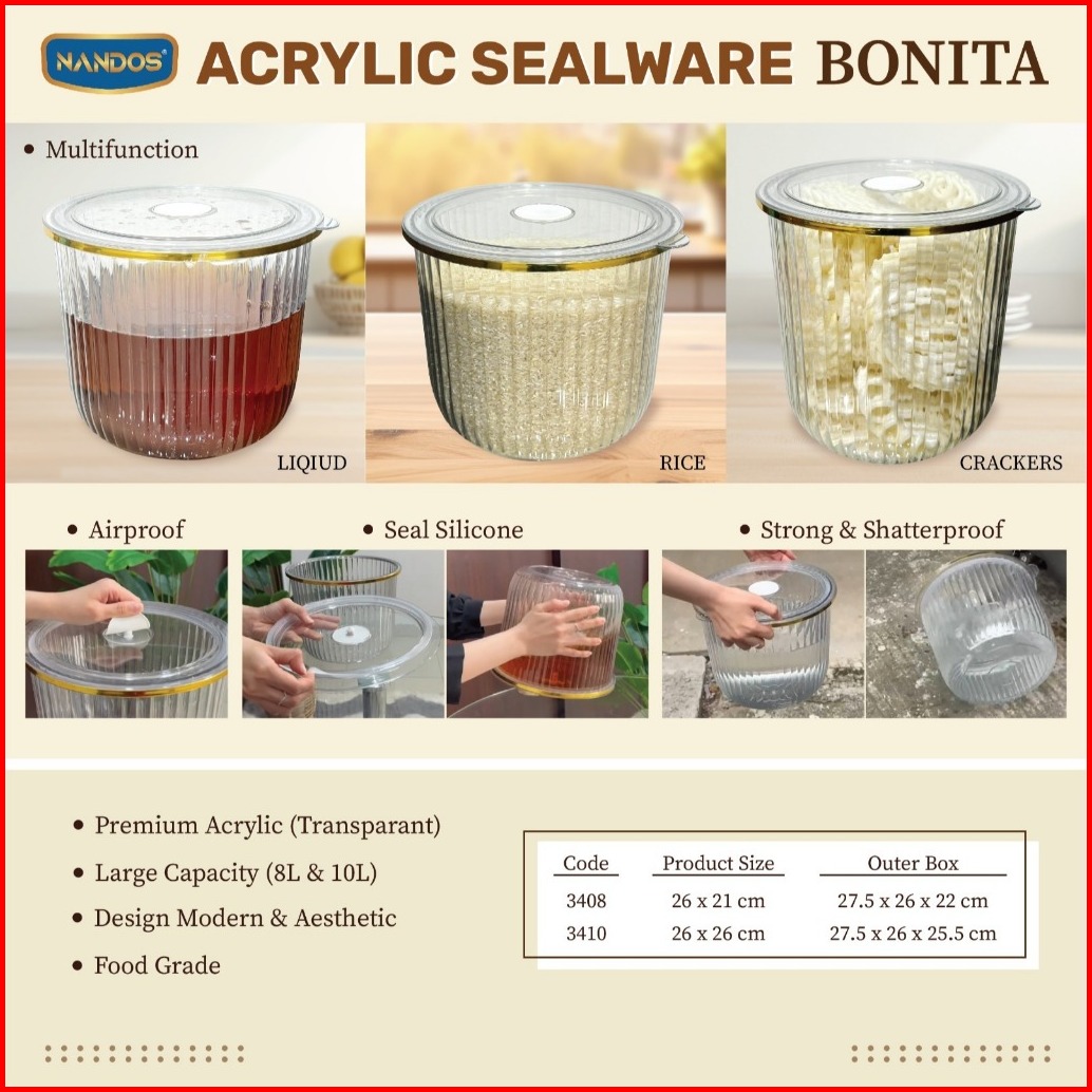 Nandos Acrylic Sealware Toples Bonita Wadah Penyimpanan Serbaguna