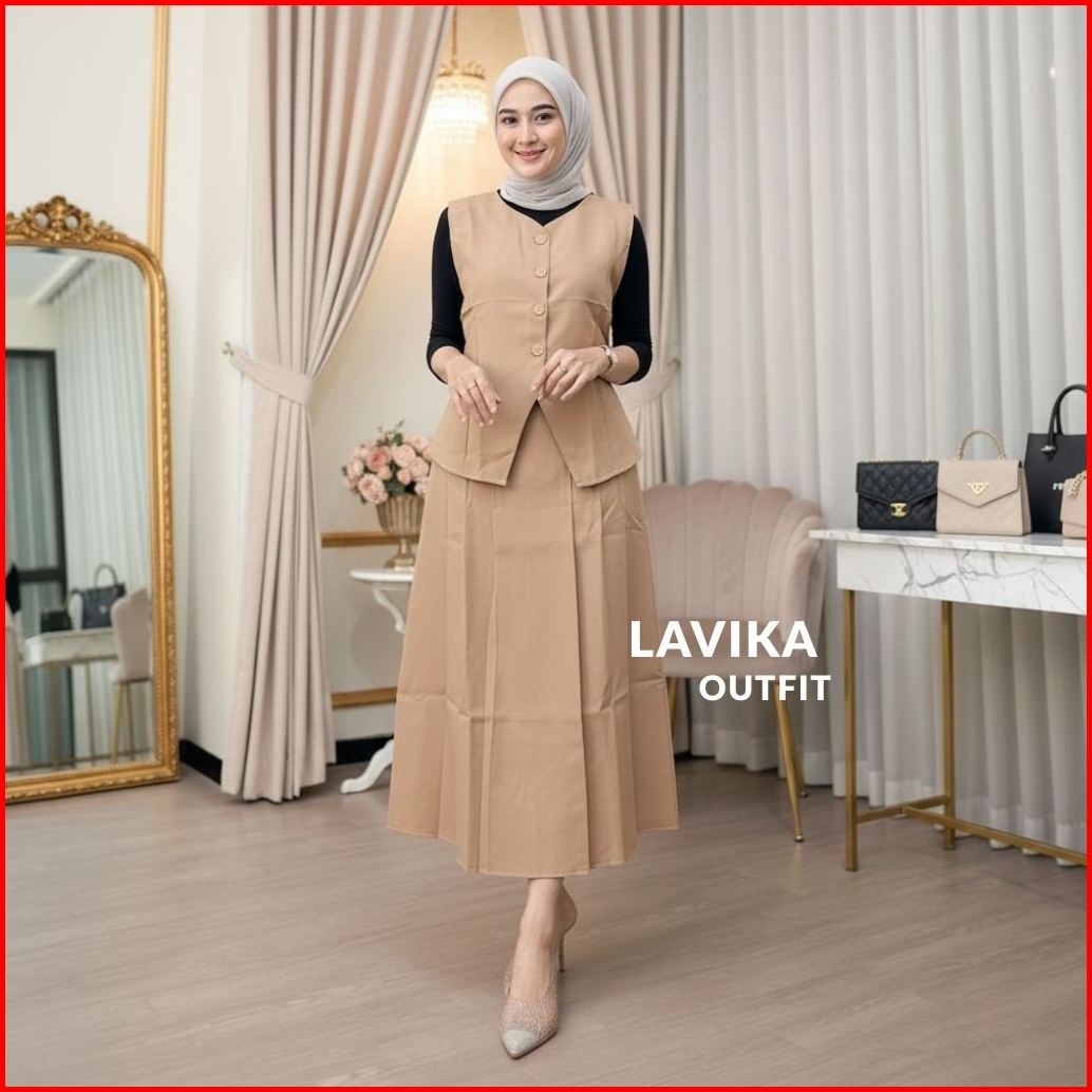 Setelan Vest Rompi Wanita Rok Midi Korean Style Formal Casual Bahan Semiwol Premium