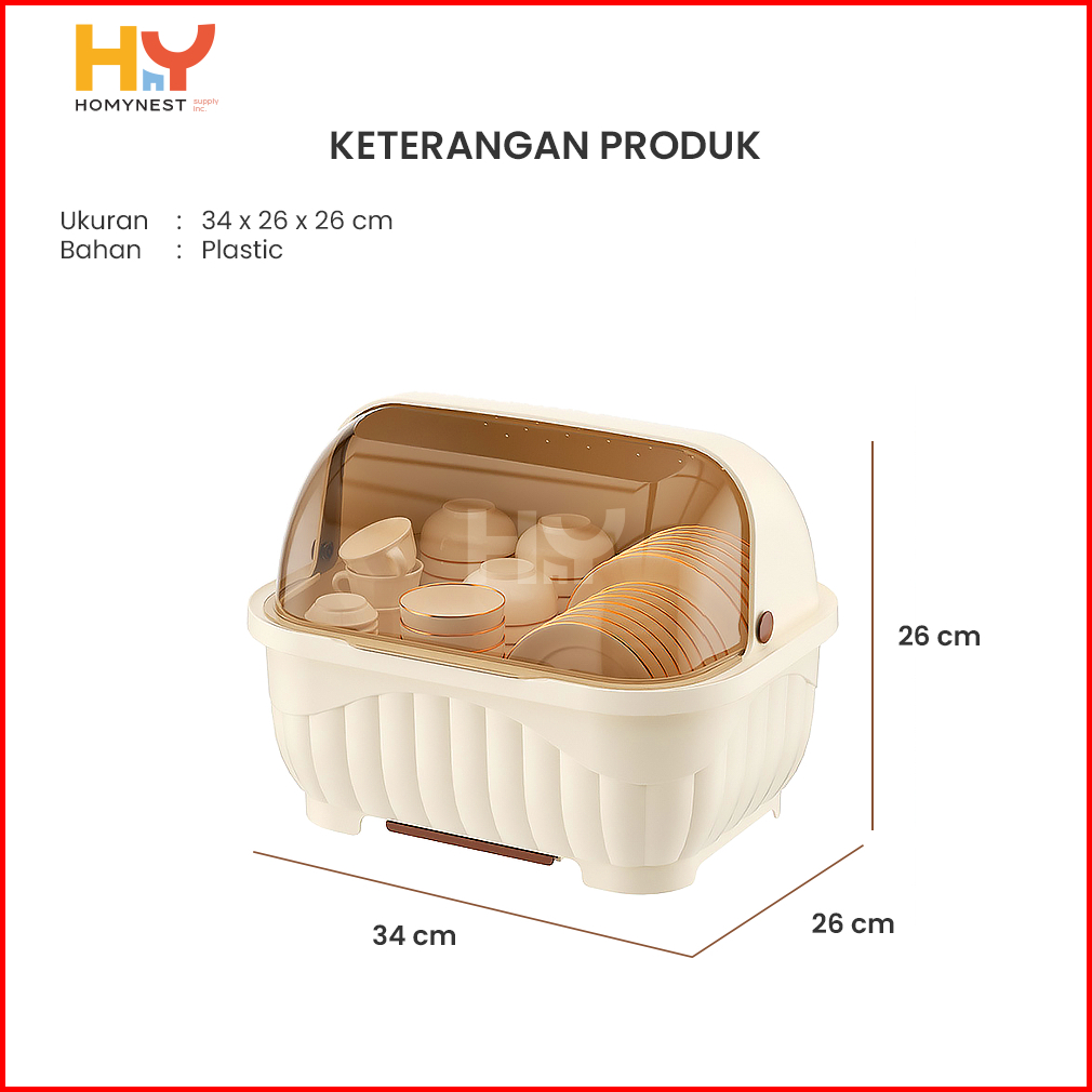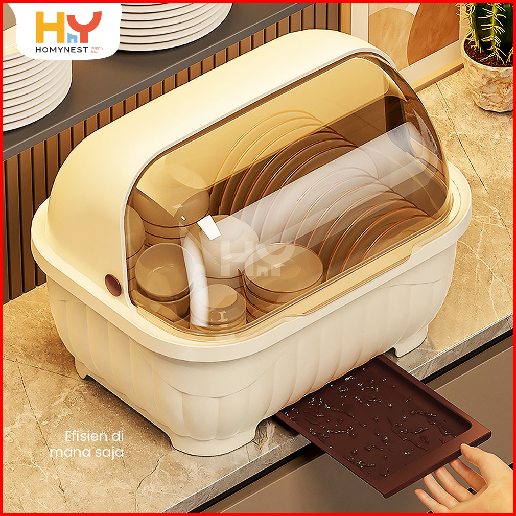 Homynest Rak Piring Sendok Garpu Mangkok Dengan Tirisan Air Dan Penutup Anti Debu