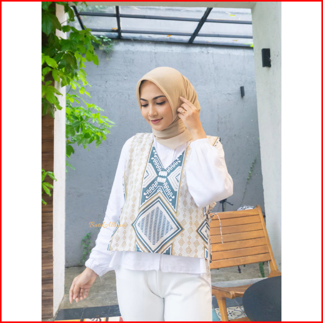 Vest Batik Wanita Modern Etnik Rompi Outer Katun Premium Vest Batik Wanita Ekslusif