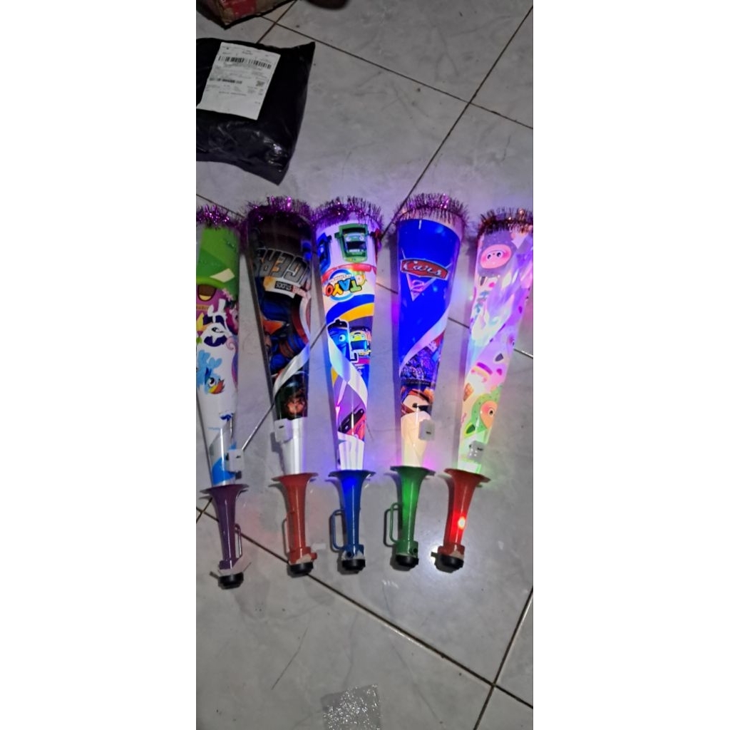 Grosir 50-100Pcs Terompet Led Terompet Tahun Baru Plastik Karakter Ultah