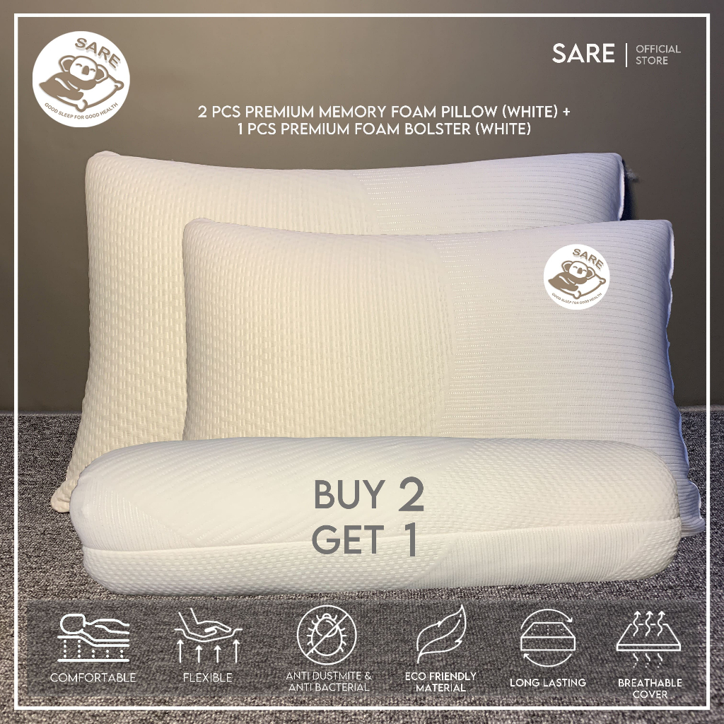 PROMO BUNDLING SARE 2 Bantal + 1 Guling Hotel Premium Memory Foam - Wool Knitting - Putih Premium