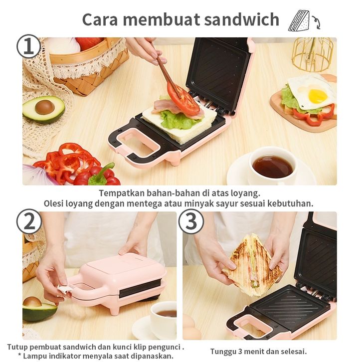 Pemanggang Roti Anti Lengket Low Watt Sandwich Maker