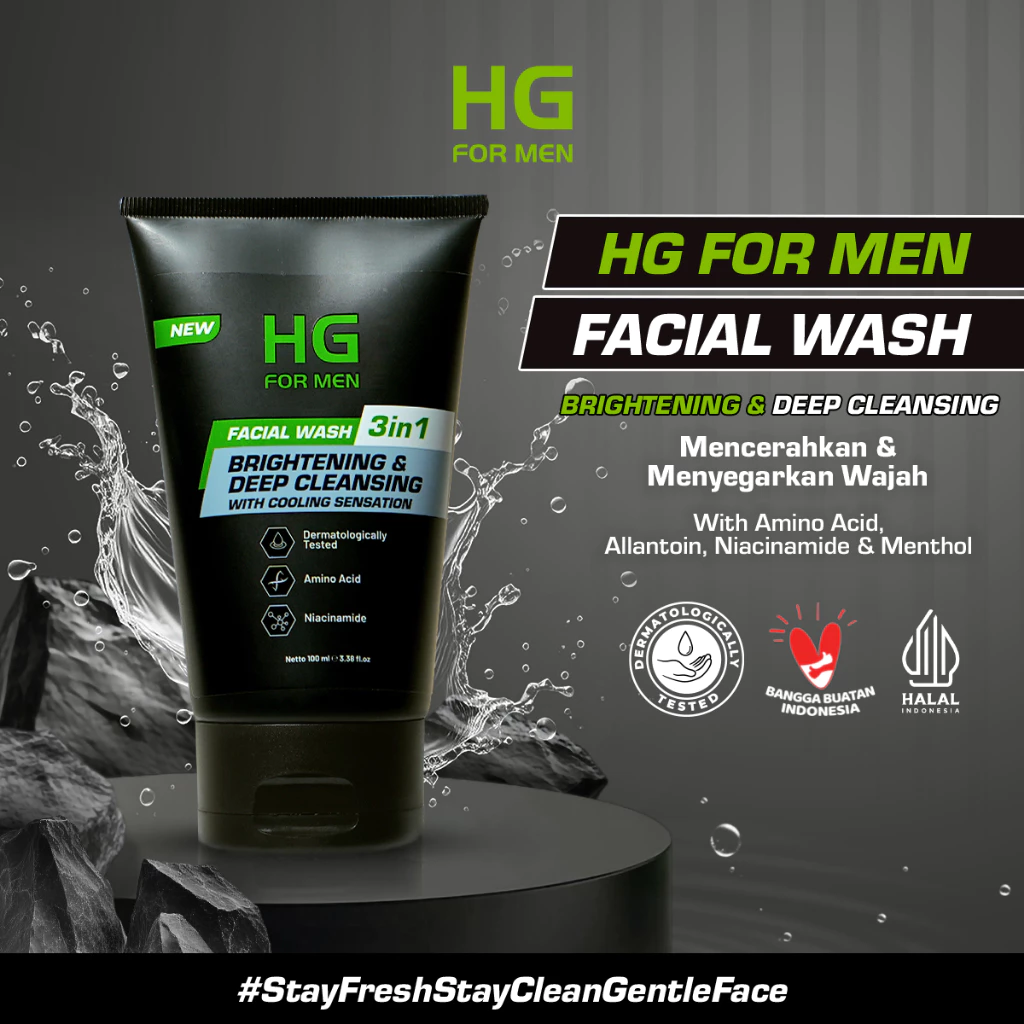 HG For Men Pembersih Wajah Brightening & Deep Cleansing 100ml - Facial Wash Gentle Amino Acid & Niacinamide