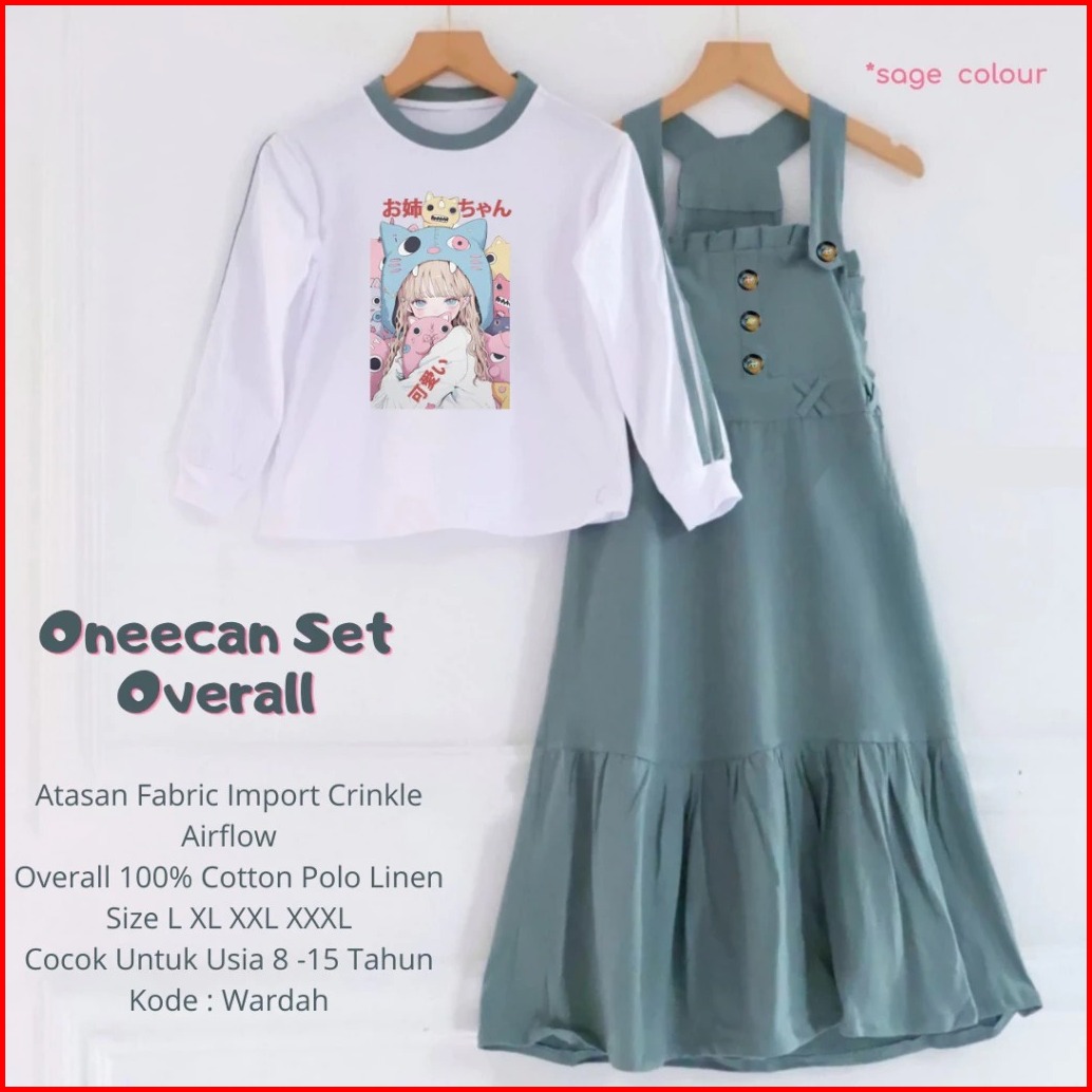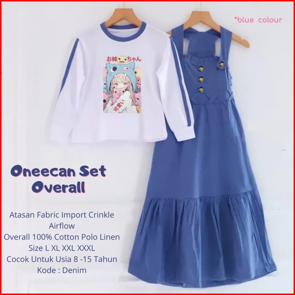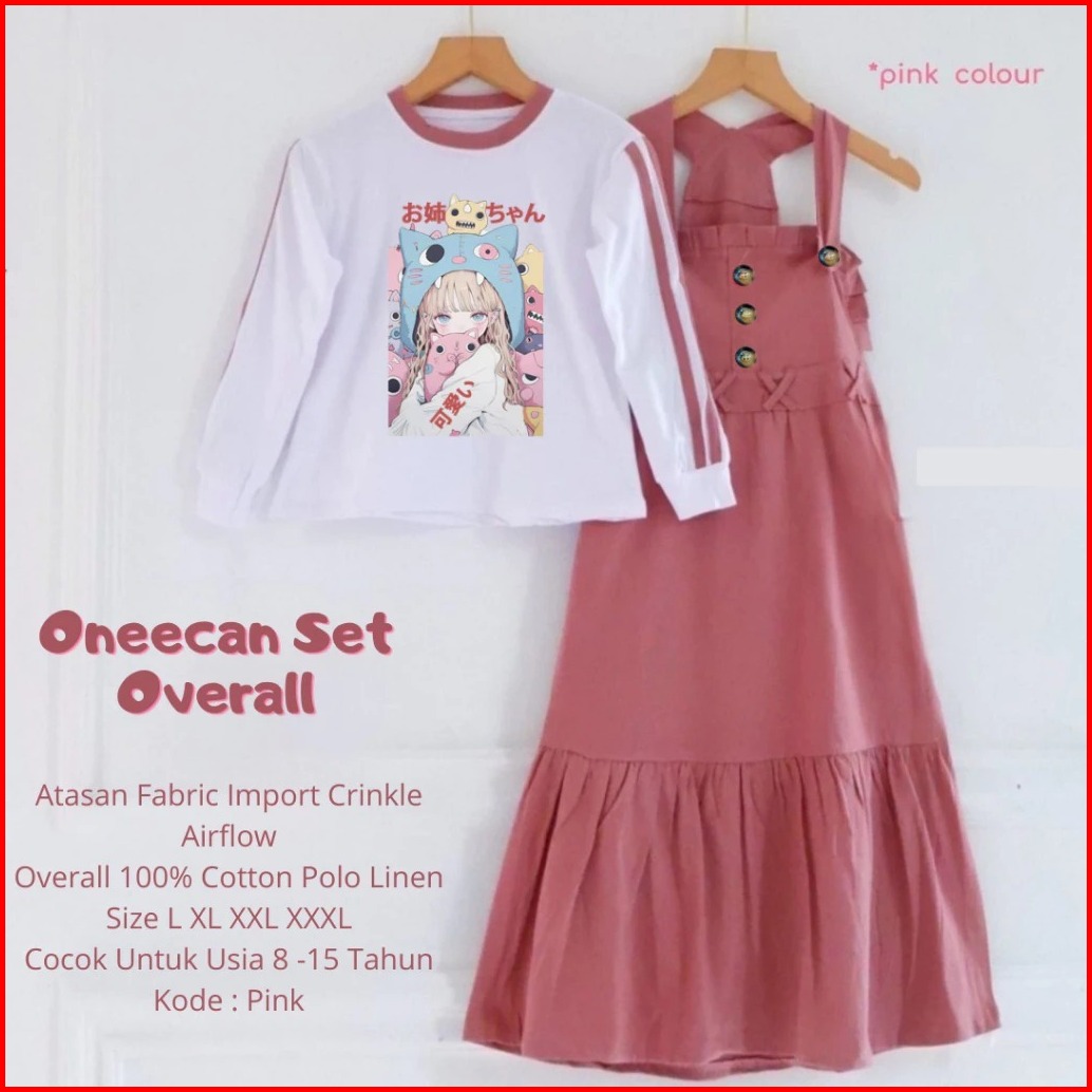 Premium Oneechan Set Overall Jumpsuit Anak Perempuan Motif Sablon 100 Cotton Polo Linen Size L Xl Xxl Xxxl Baju Anak Per