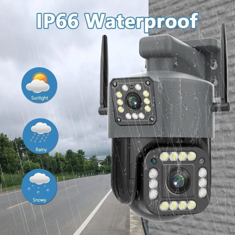 IP Camera CCTV Dual Lens 4K 8MP Outdoor Kamera Wifi Waterproof Two Way Audio Auto Tracking Dual Screen Preview PTZ