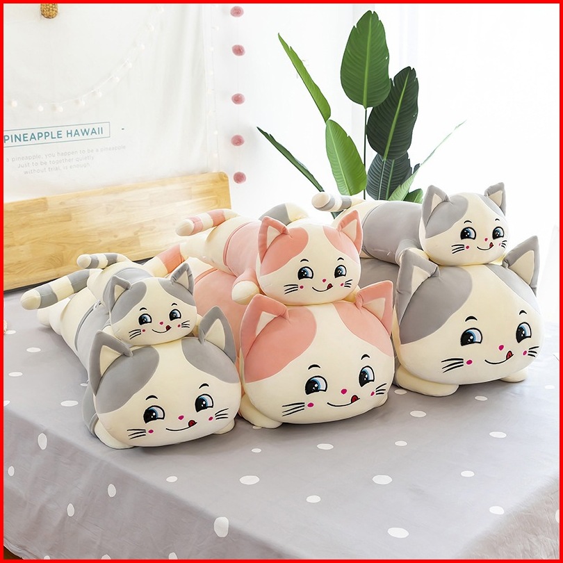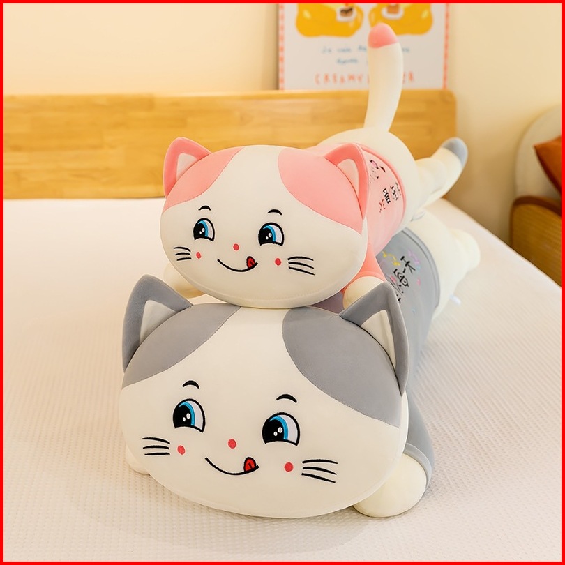Bantal Guling Karakter Kucing Lying Bahan Halus Lembut Kado Hadiah Ulang Tahun Anak Ukuran 90cm