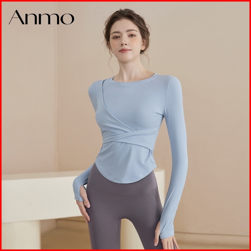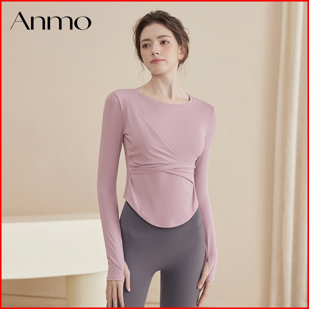 Anmo-atasan Olahraga Lengan Panjang Wanita Desain Elegan Pas Di Badan Memberikan Efek Ramping Cocok Untuk Pilates Gym Da