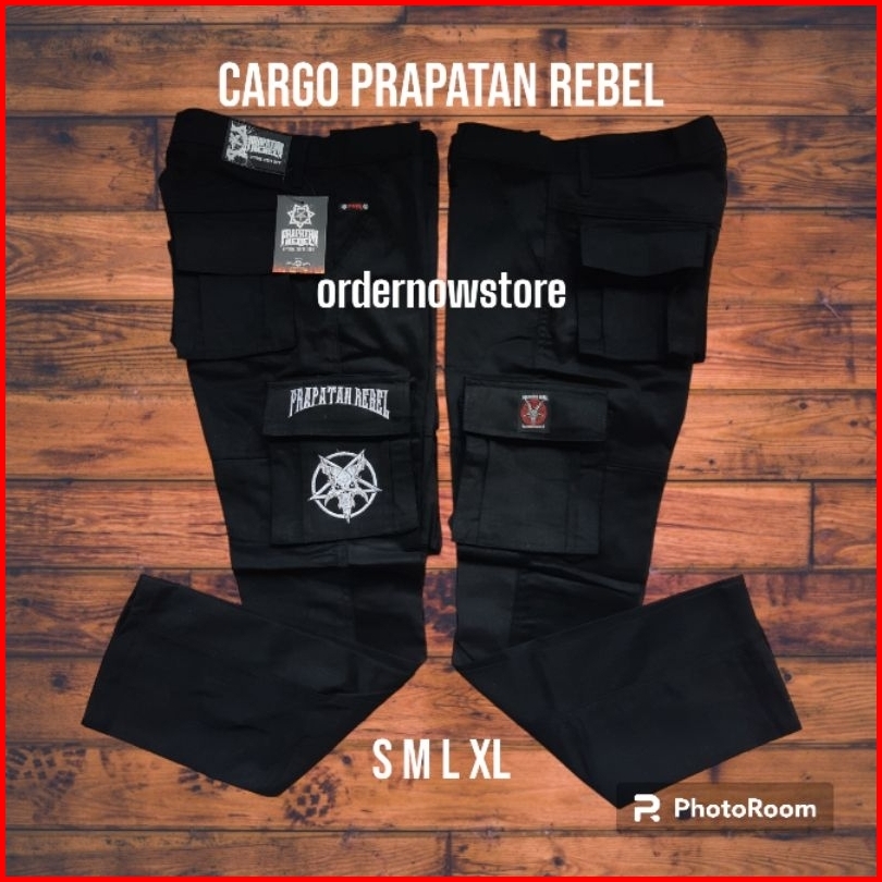 Celana Cargo Prapatan Rebel Panjang Hitam Size S M L Xl Bordir Tanduk