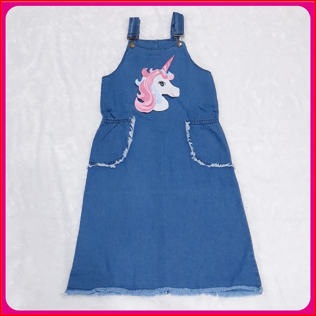 Overall Jumpsuit Jeans Anak Perempuan Rawis Bordir Unicorn 4-14 Tahun