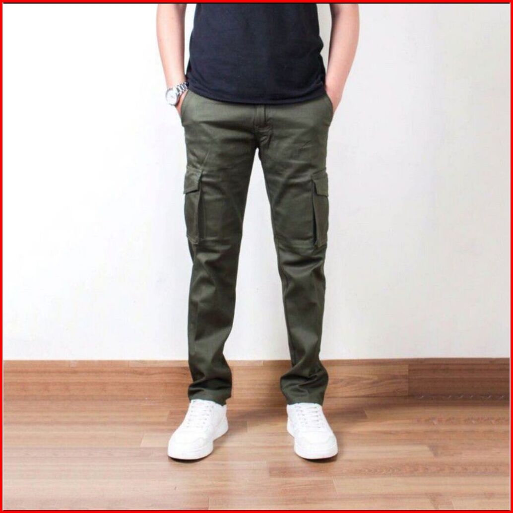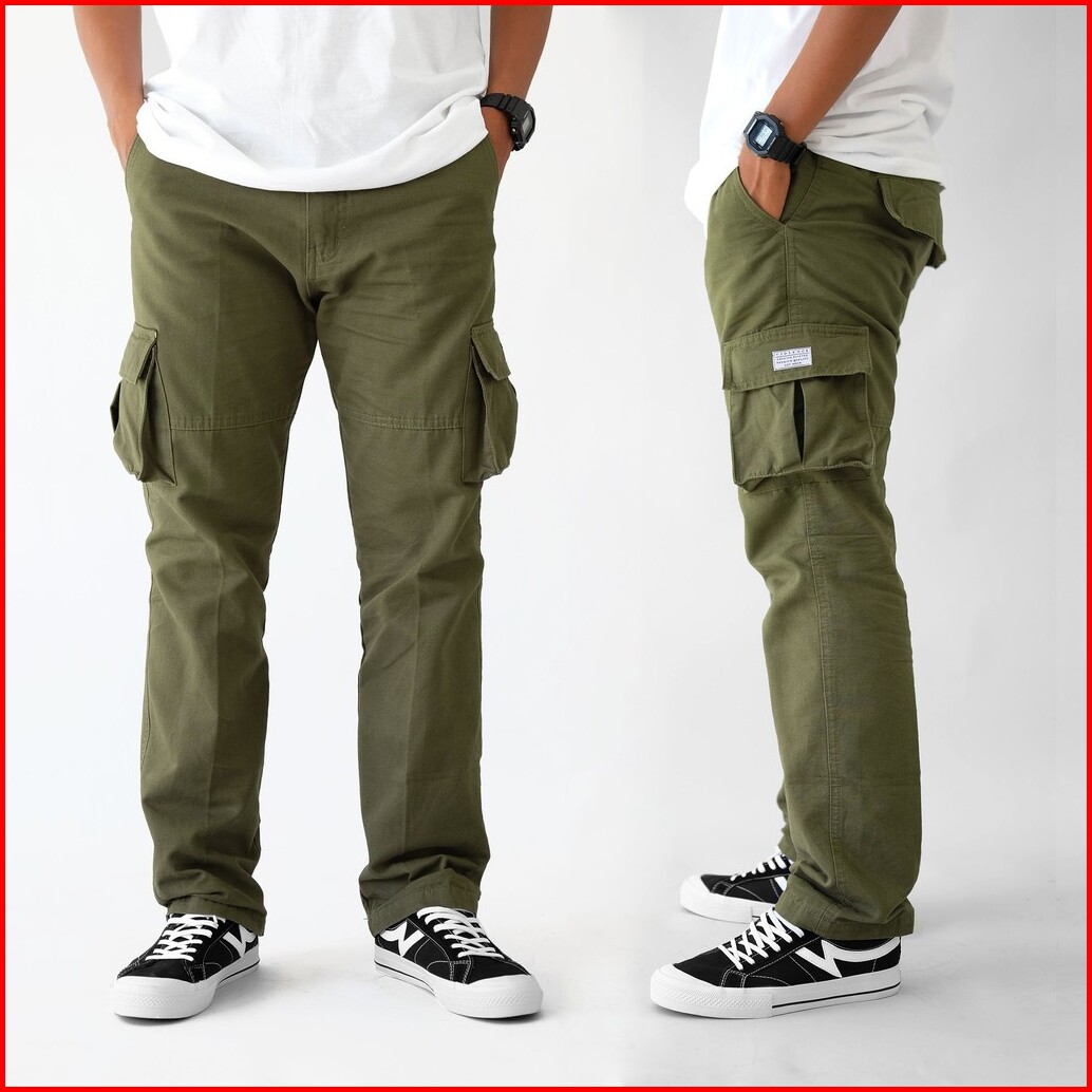 Celana Cargo Panjang Pria Gunung Pdl Banyak Kantong Kaki Lebar Hijau Army - L Bark Store