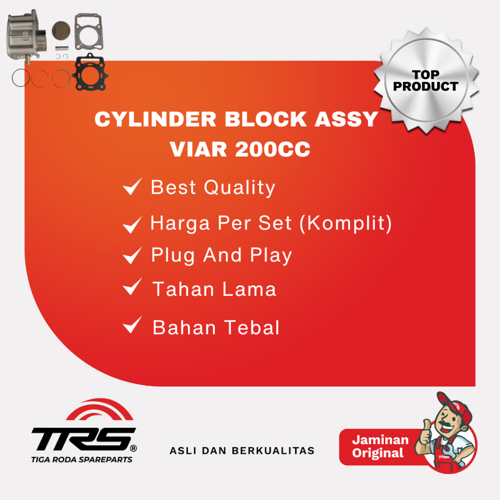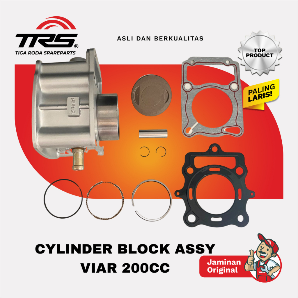 TRS Cylinder Block Set Buring Motor Roda Tiga Viar Karya 200cc Spareparts Original TRS