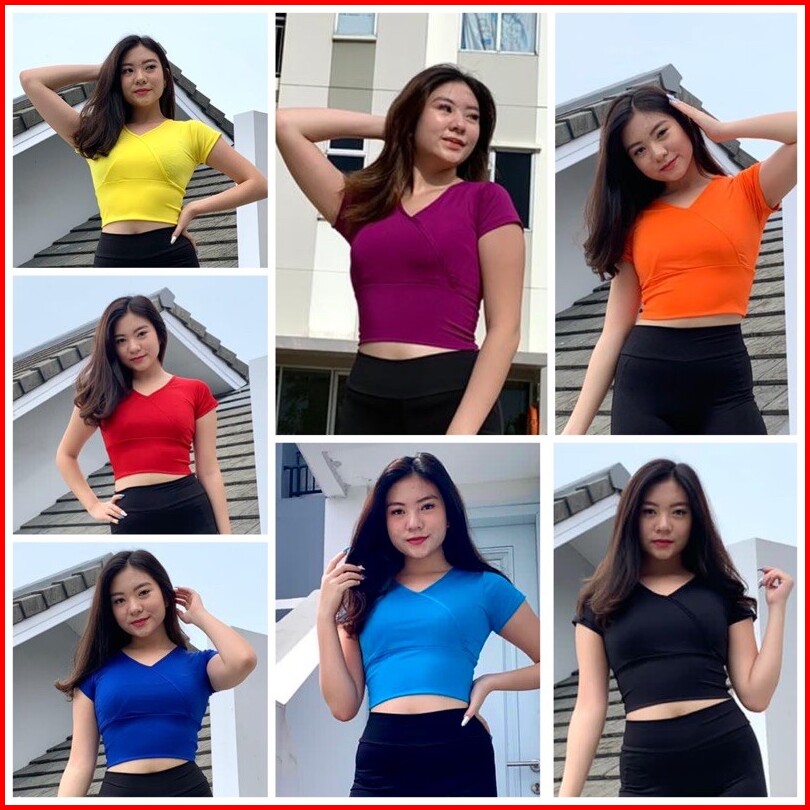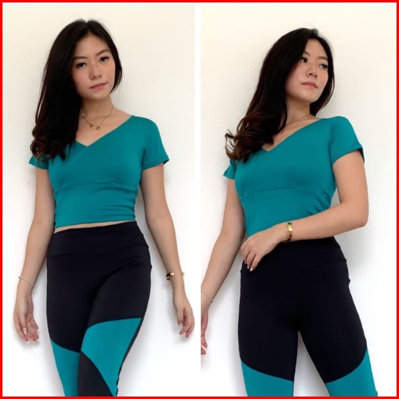 Atasan Senam Aerobik Zumba Yoga Gym Fitness Model Crop V-neck Pendek