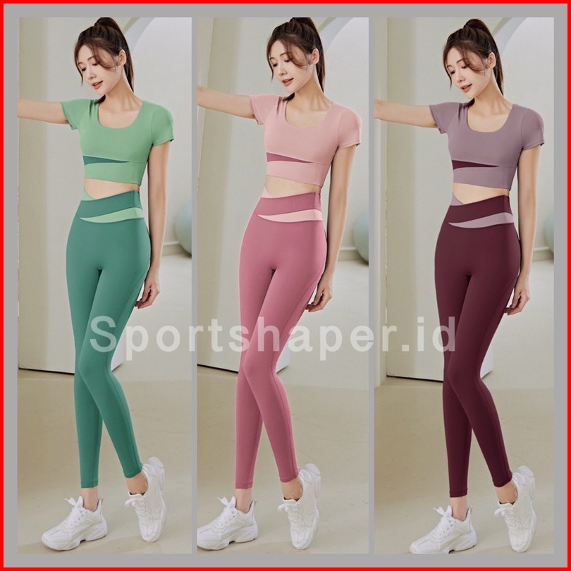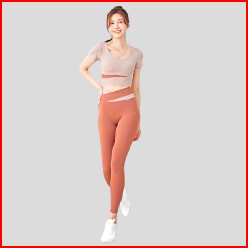 Setelan Olahraga Caramel Baju Lengan Pendek Legging Yoga Fitness Gym