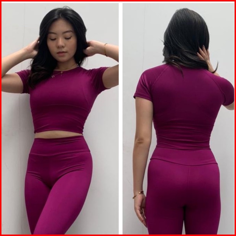 Atasan Senam Aerobik Zumba Yoga Gym Fitness Model Crop Pendek Polos