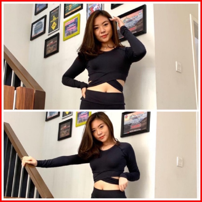 Atasan Senam Line Dance Aerobik Zumba Yoga Gym Fitness Model Crop Silang Panjang
