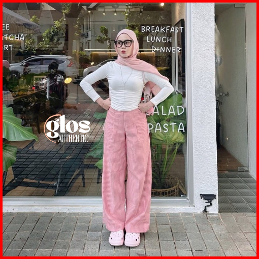 City Pants Celana Panjang Wanita Kantor Kuliah Motif Garis Kulot Pinstripe