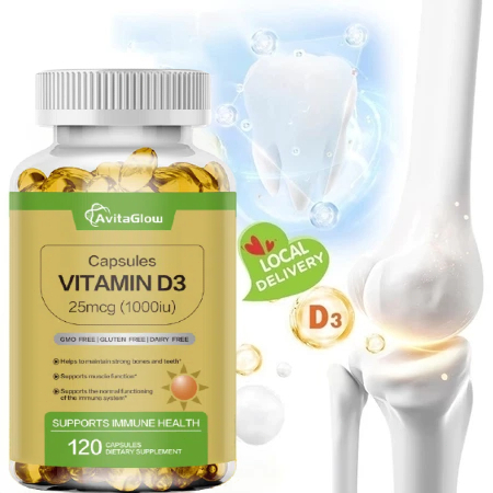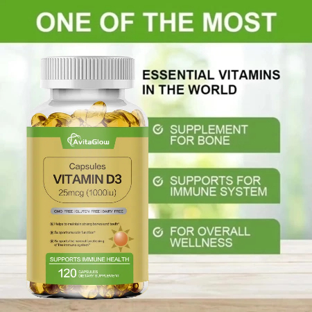 AvitaGlow Vitamin D3 1000 IU 25 Mcg Vitamin D Capsules Bone Supplements Prevent Fracture Risk and Promote Calcium Absorption 120 Capsules