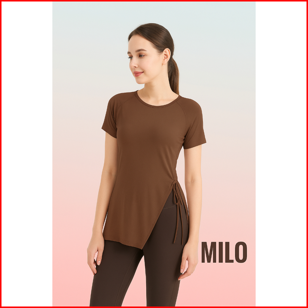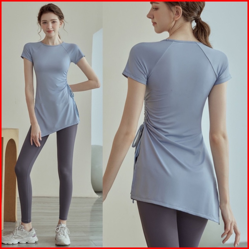 Baju Olahraga Lengan Ppendek Serut Samping Atasan Gym Fitnes Baju Tenis