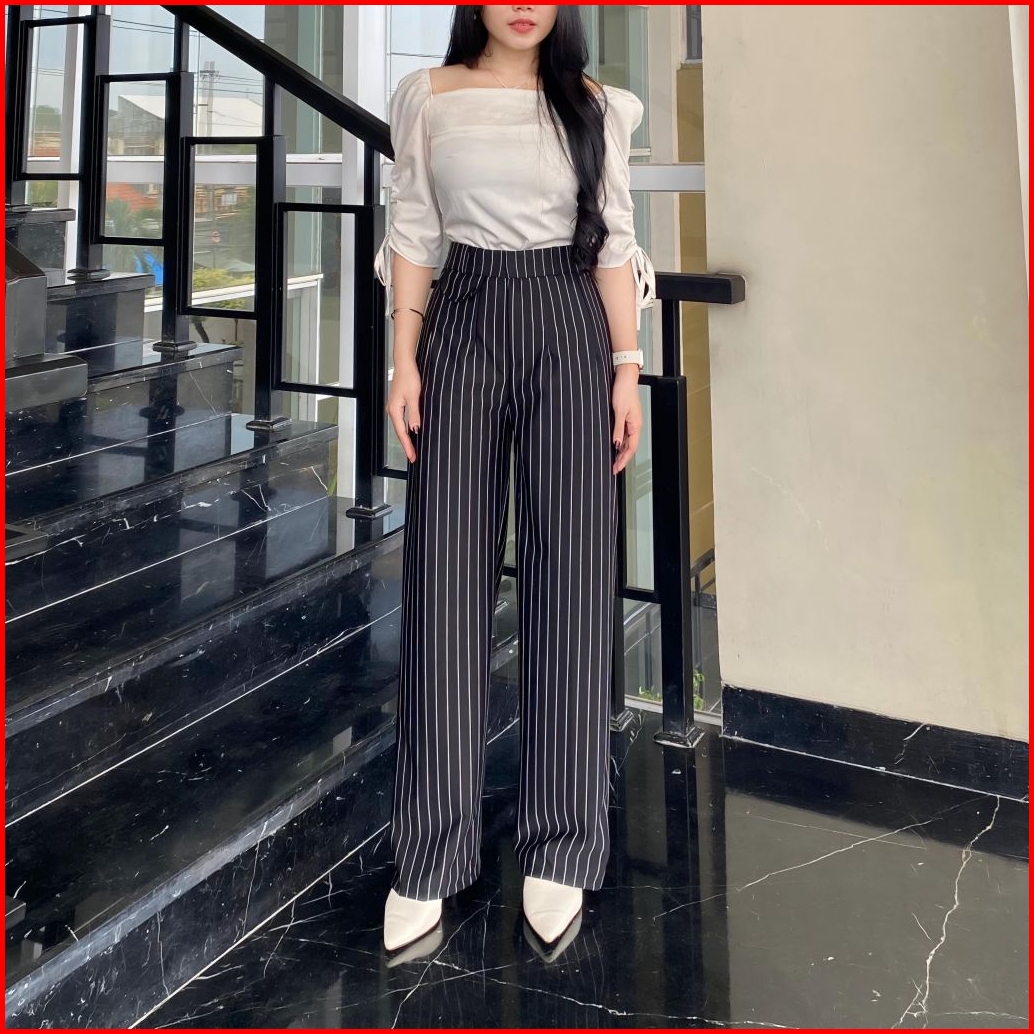 Oro Pants Stripe Bangkok - Celana Kulot Stripe Loose Pants Highwaist Wanita Anti Kusut