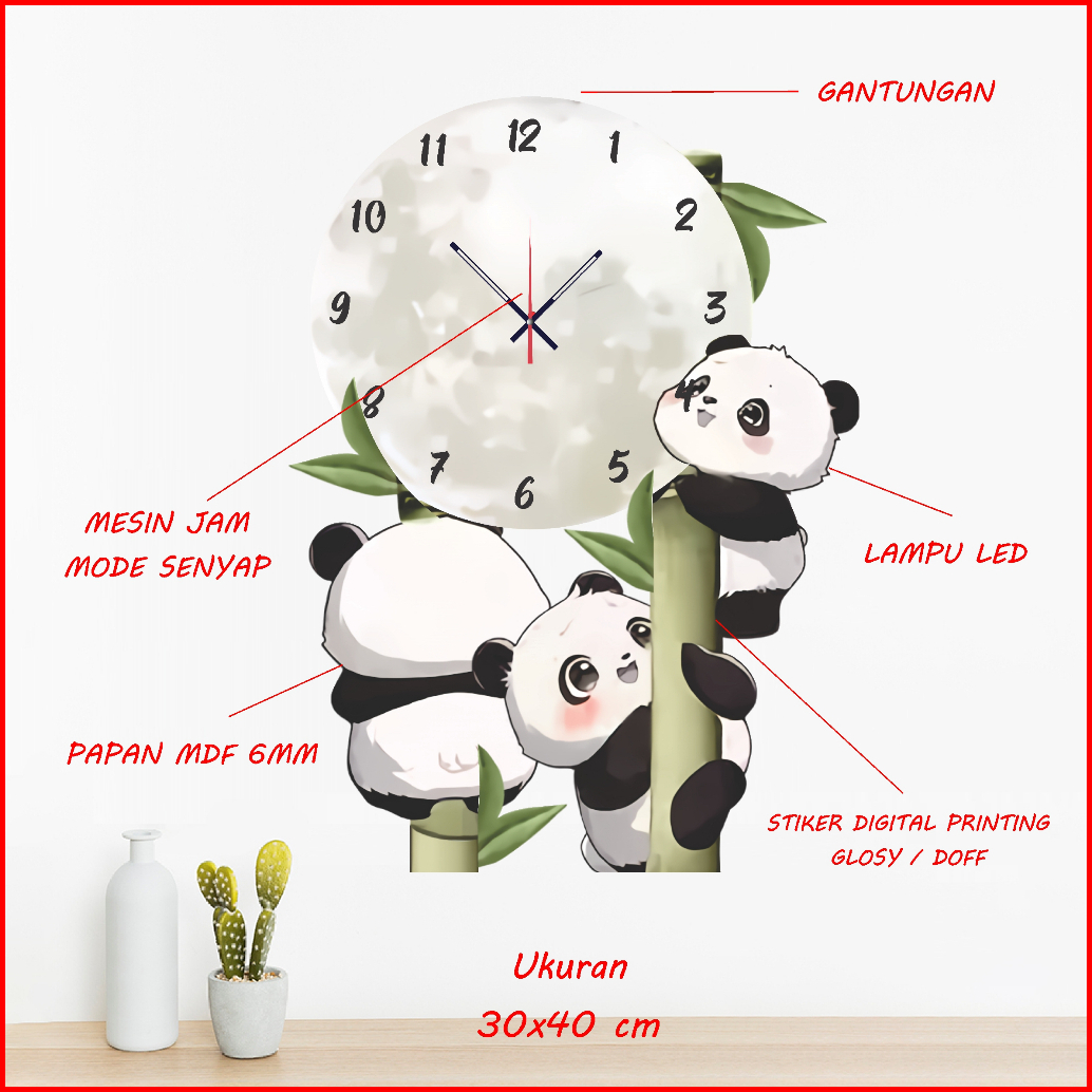 Jam Dinding Kayu Karakter Kartun Panda Dekorasi Pajangan Ruangan Minimalis Binatang Lucu Imut