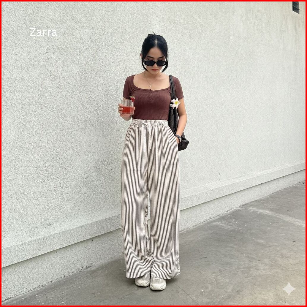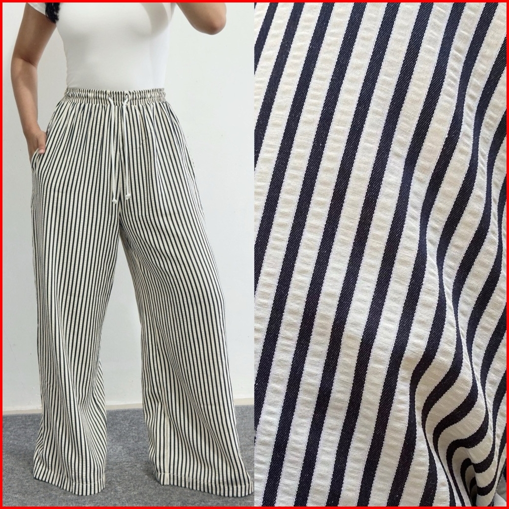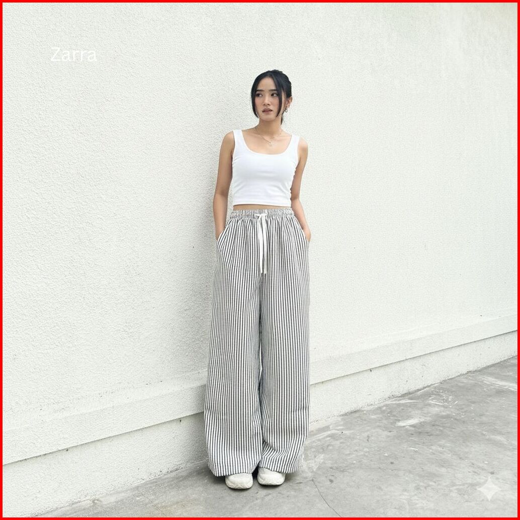 Celana Stripe Wanita Loose Pants Highwaist - Celana Tidur Garis Garis - Celana Panjang Wanita