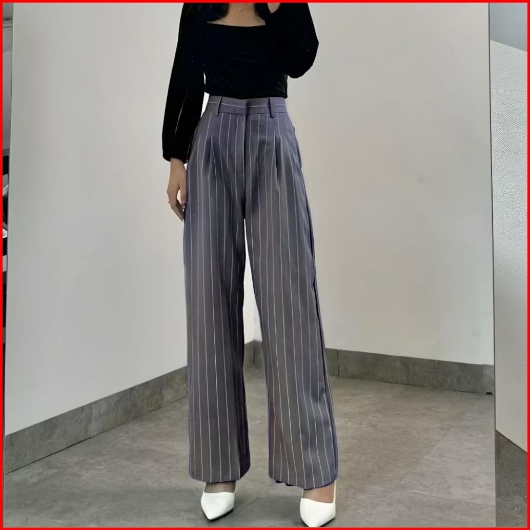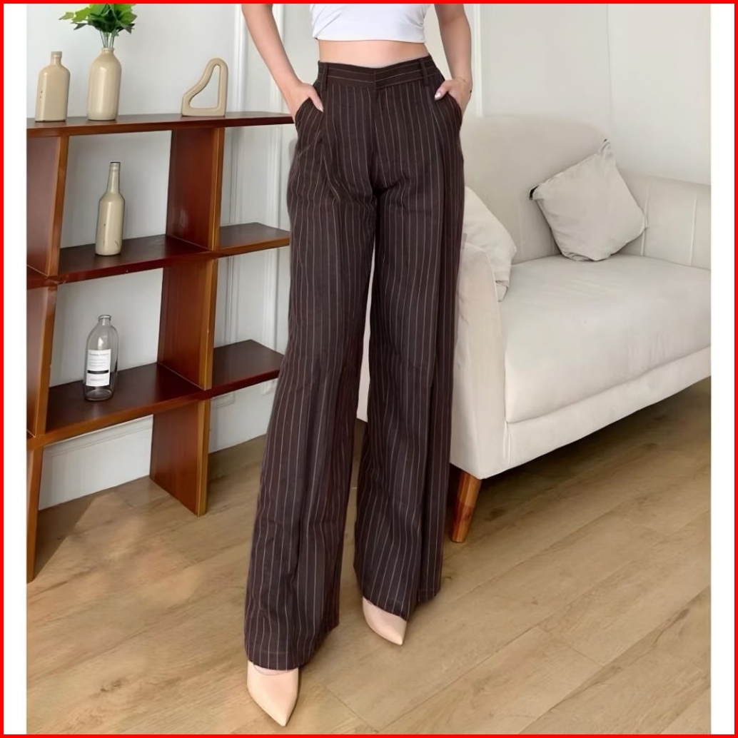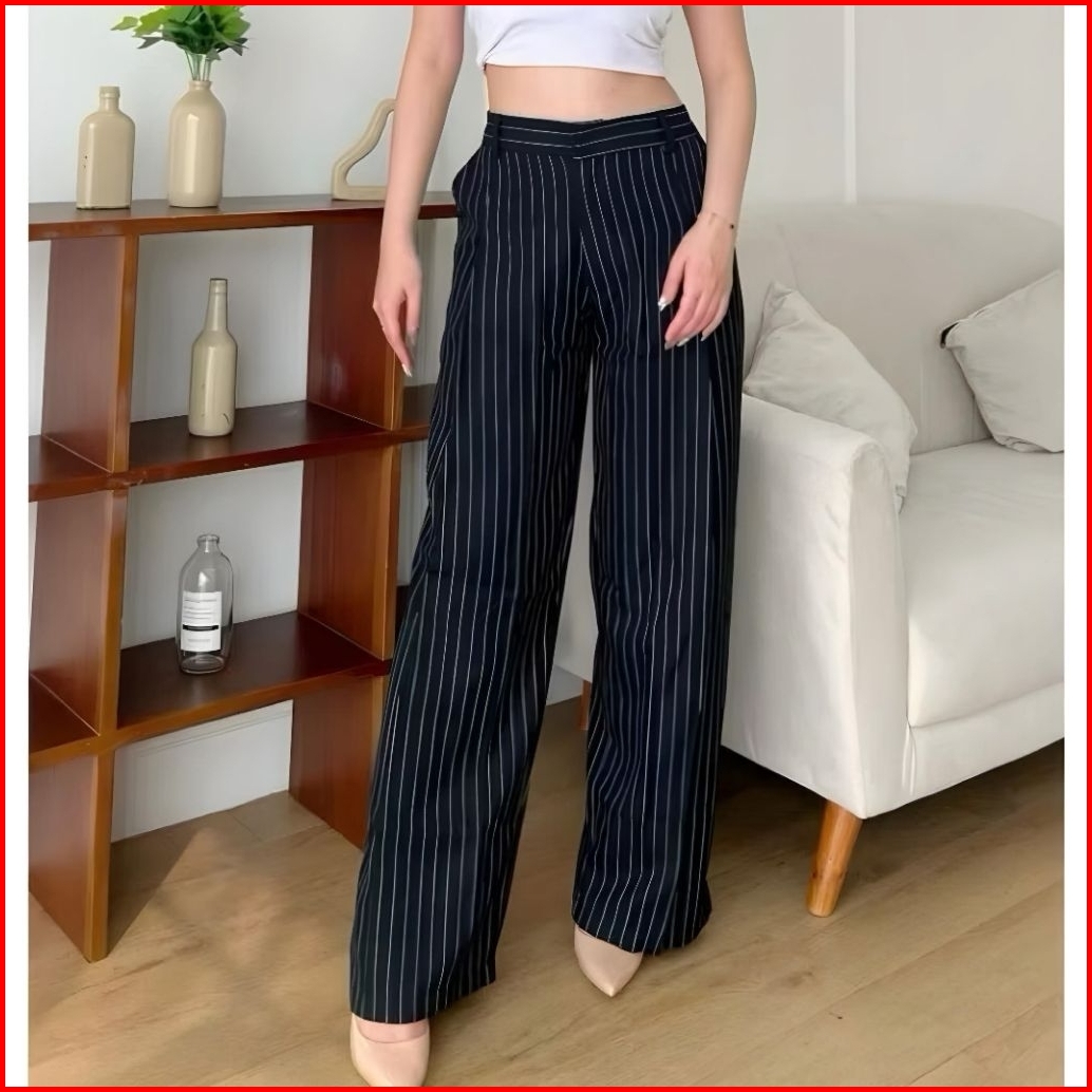 Kuma Pants - Loose Pants Stripe Trouser Wanita -celana Anti Kusut - Celana Kulot Wanita