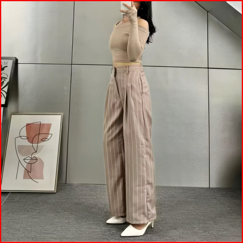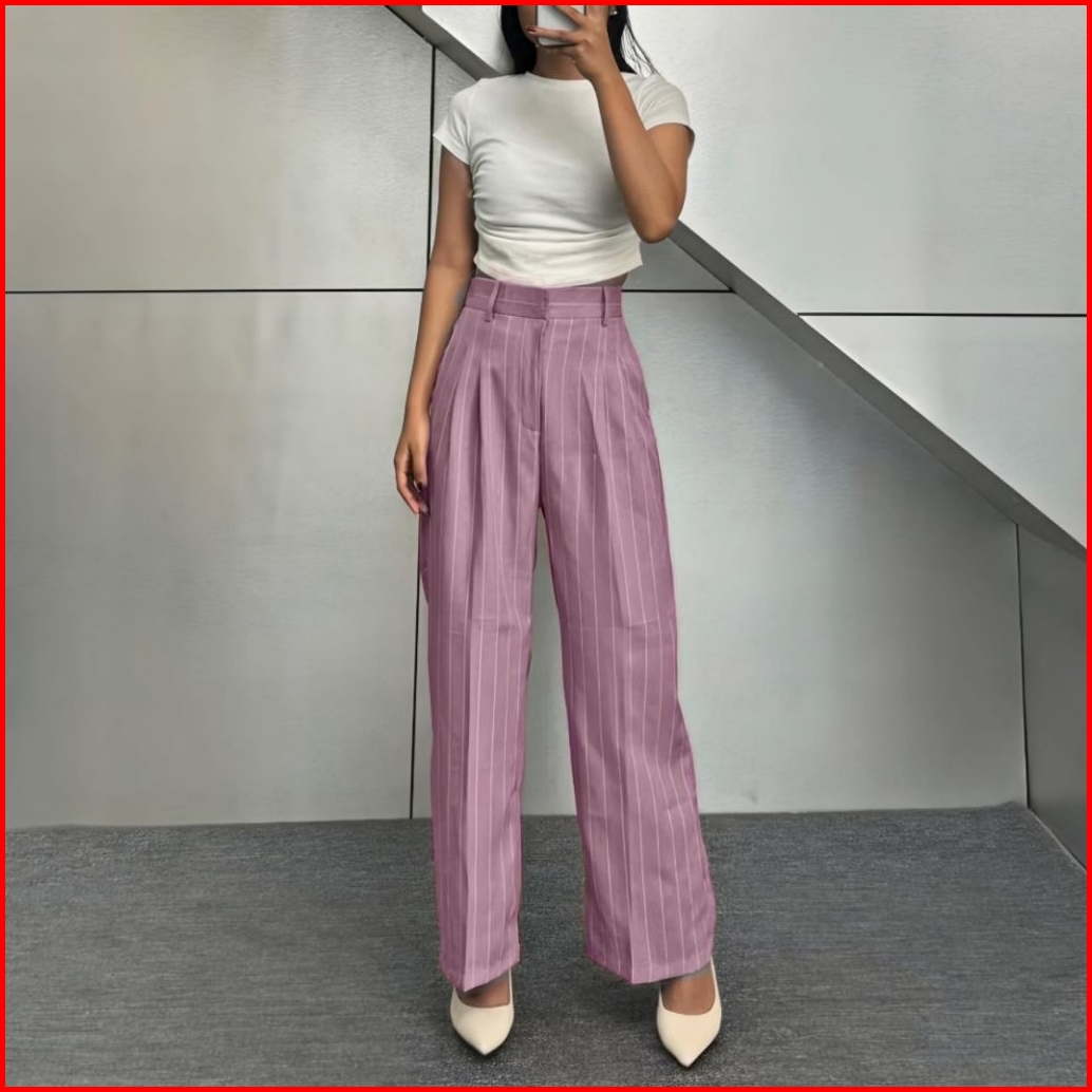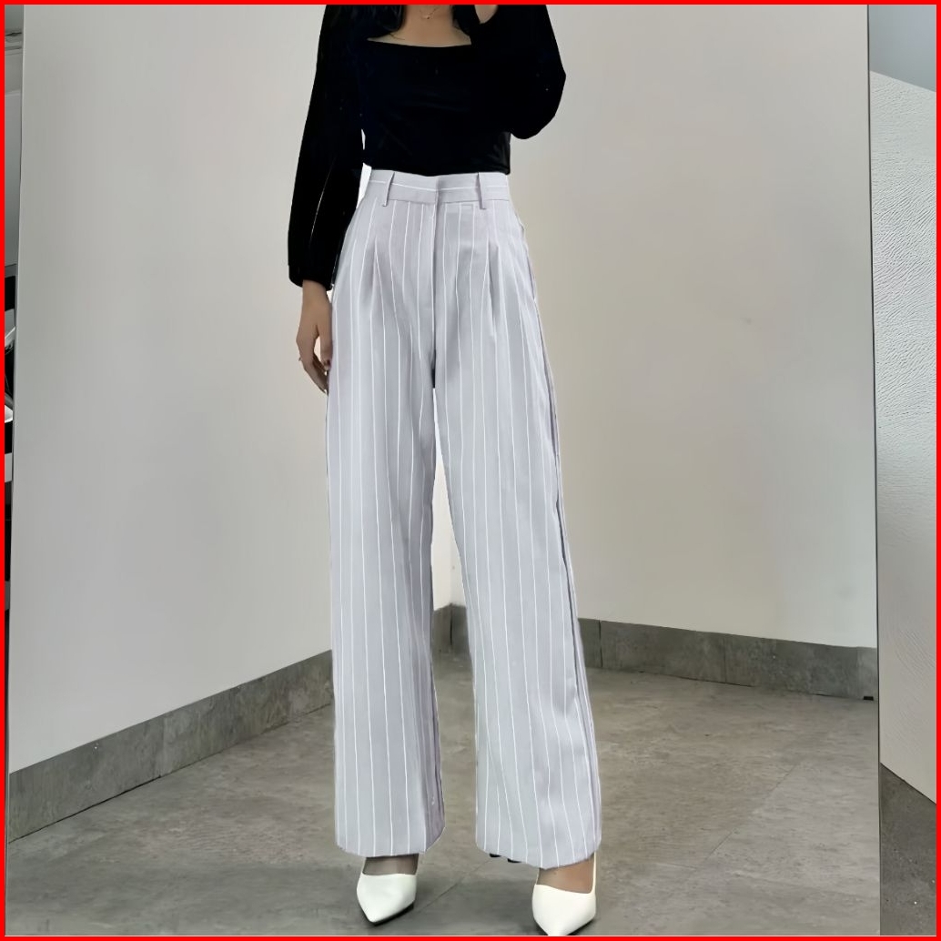 Kuma Pants - Loose Pants Stripe Trouser Wanita -celana Anti Kusut - Celana Kulot Wanita