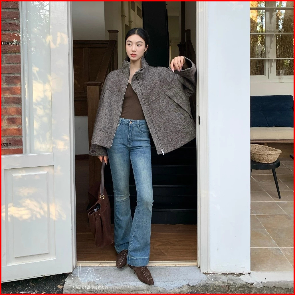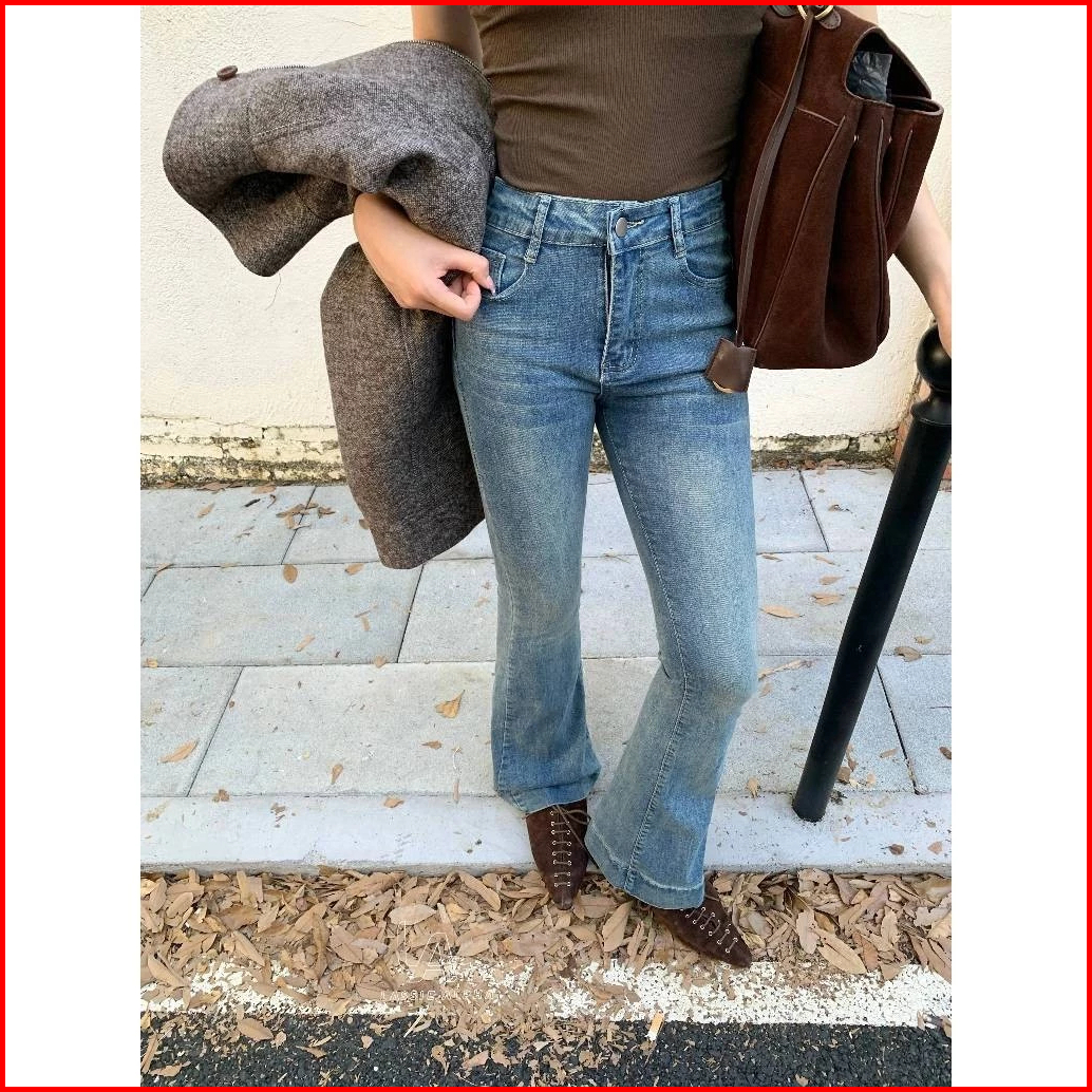 Lassie Alpha J79 Ready Stok Jeans Wanita Model Cutbray Highwaist Color Blue Retro Stretchy Material