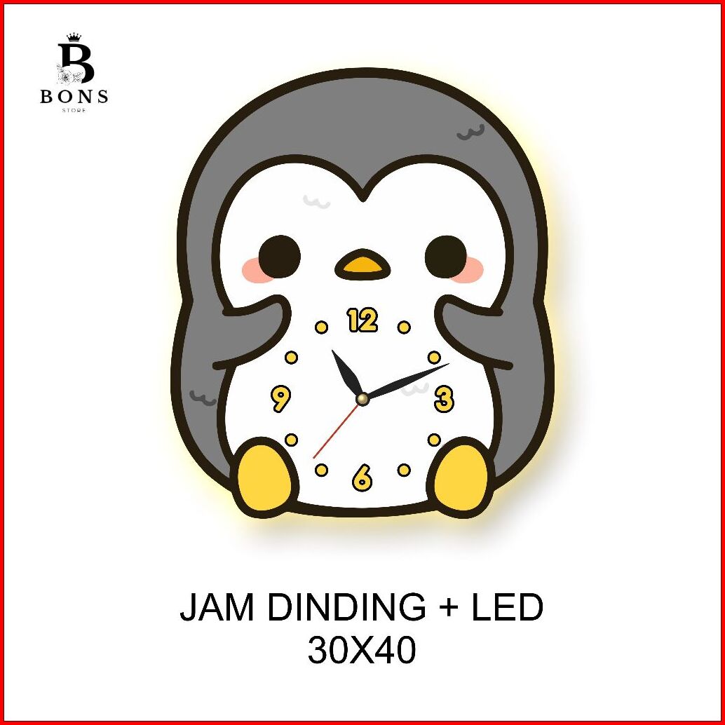 A6 Jam Dinding Pinguin Led Home Sweet Home Hiasan Dinding Ruang Tamu Kamar Tidur