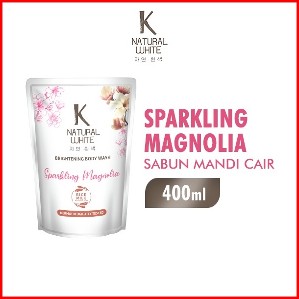 K Natural White Sabun Mandi Cair Magnolia Pouch 400 Ml X3