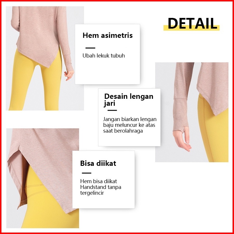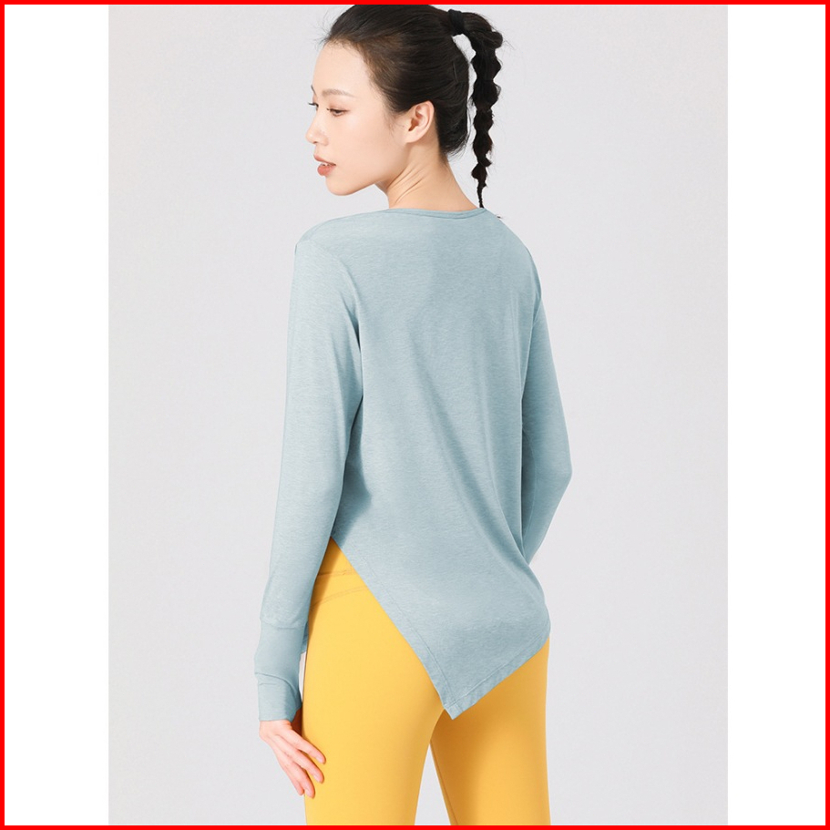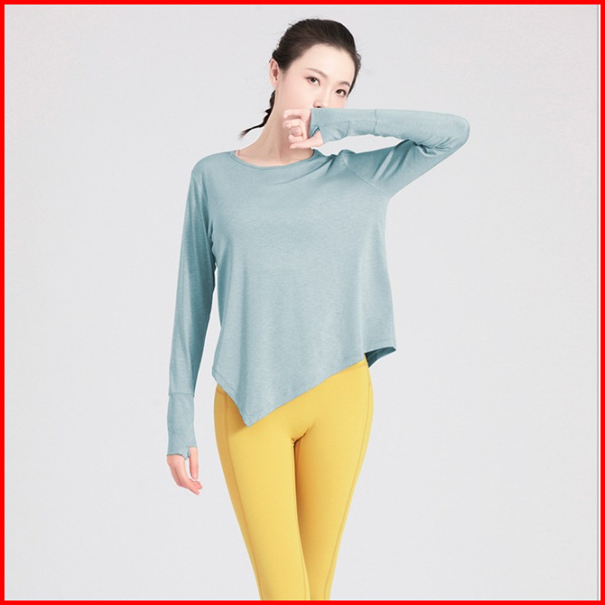 Atasan Yoga Lengan Panjang Asimetris Bernapas Longgar Baju Olahraga Wanita Atau Atasan Olahraga Wanita Lengan Panjang Ba