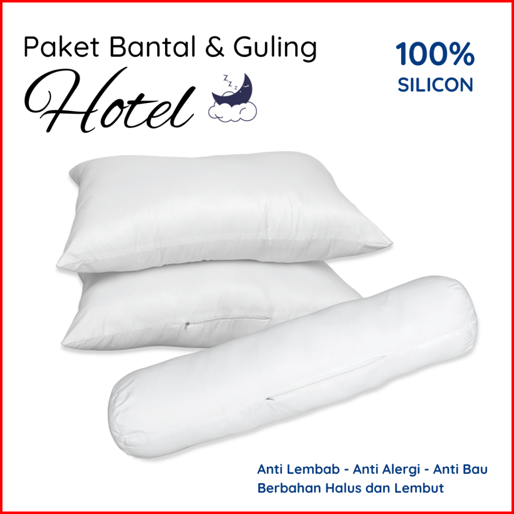Paket Hemat 2 Bantal 1 Guling Dewasa 100 Full Silikon Premium Bantal Hotel