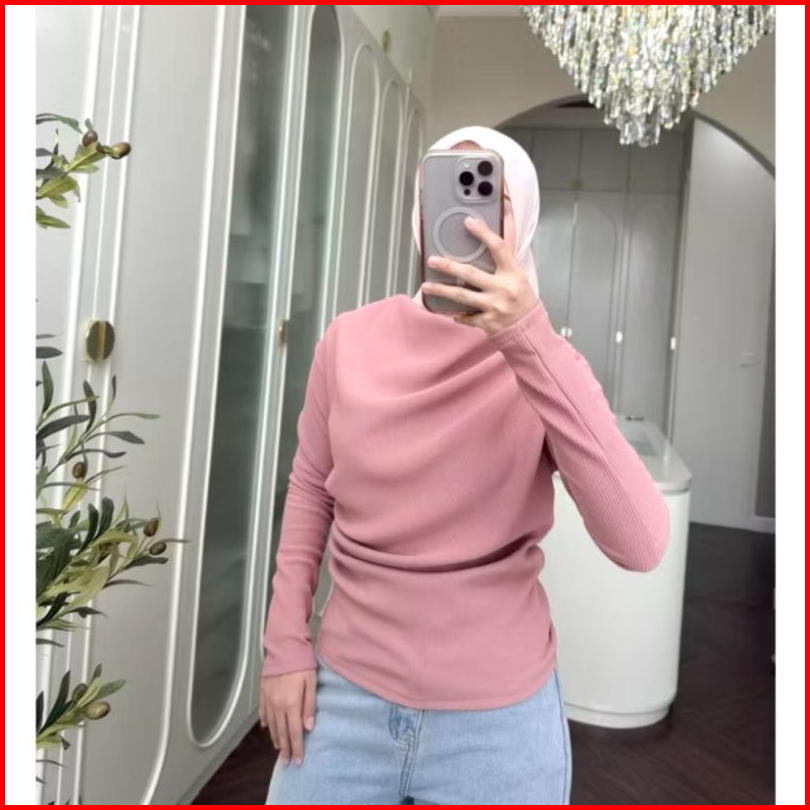 April Top Atasan Knit Wanita Korean Top Baju Knit Wanita Lengan Panjang Basic Long Sleeve Blouse April Rip Knit Premium