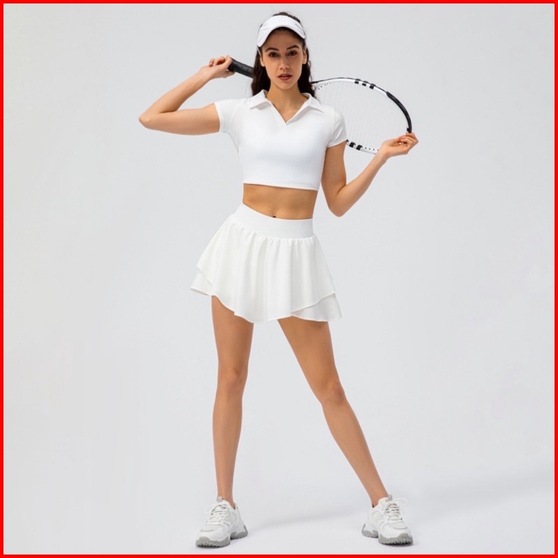 Atasan Saja Setelan Senam Aerobik Zumba Yoga Gym Fitness Model Crop Kerah-rok Rumbai