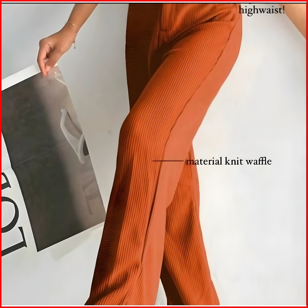 Celana Knit Waffle Slit Cutbray High Waist Cubit Celana Cutbray Celana Cutbray Wanita Celana Cutbray Remaja Celana Wanit