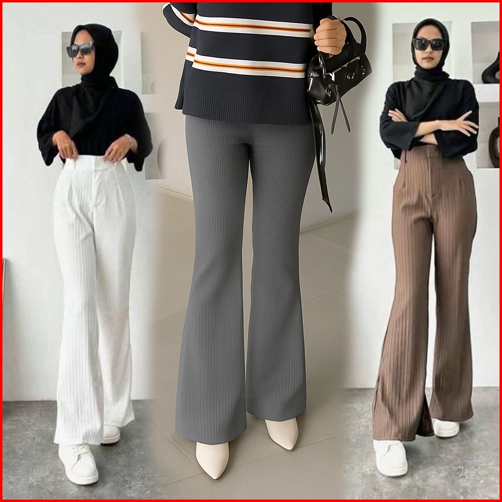 Naway - Celana Cutbray Knit Wanita Long Cullote Pants Highwaist Knit Cutbray Pants Basic Knit Korean Long Trousers