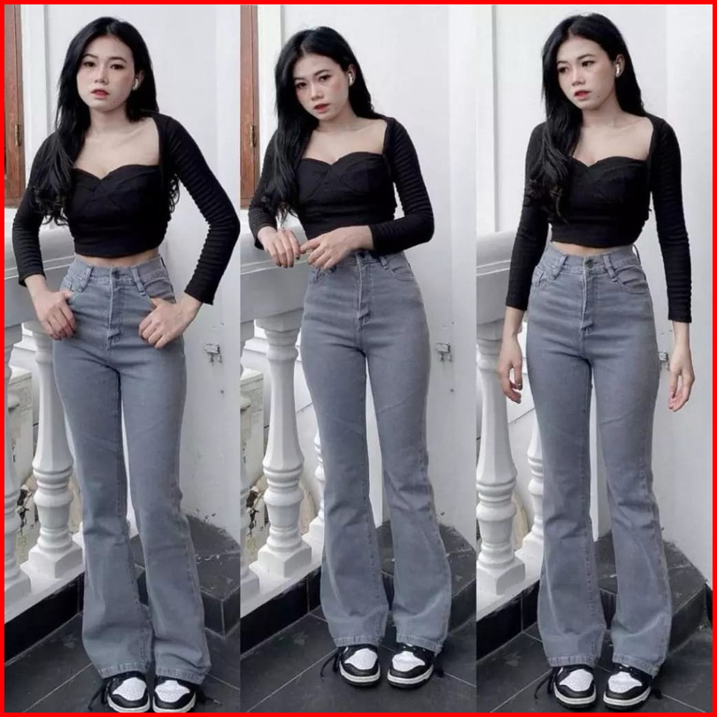 Celana Jeans Wanita Celana Cutbray Hihwaist Jeans Cutbray Stetch Melar Kekinian