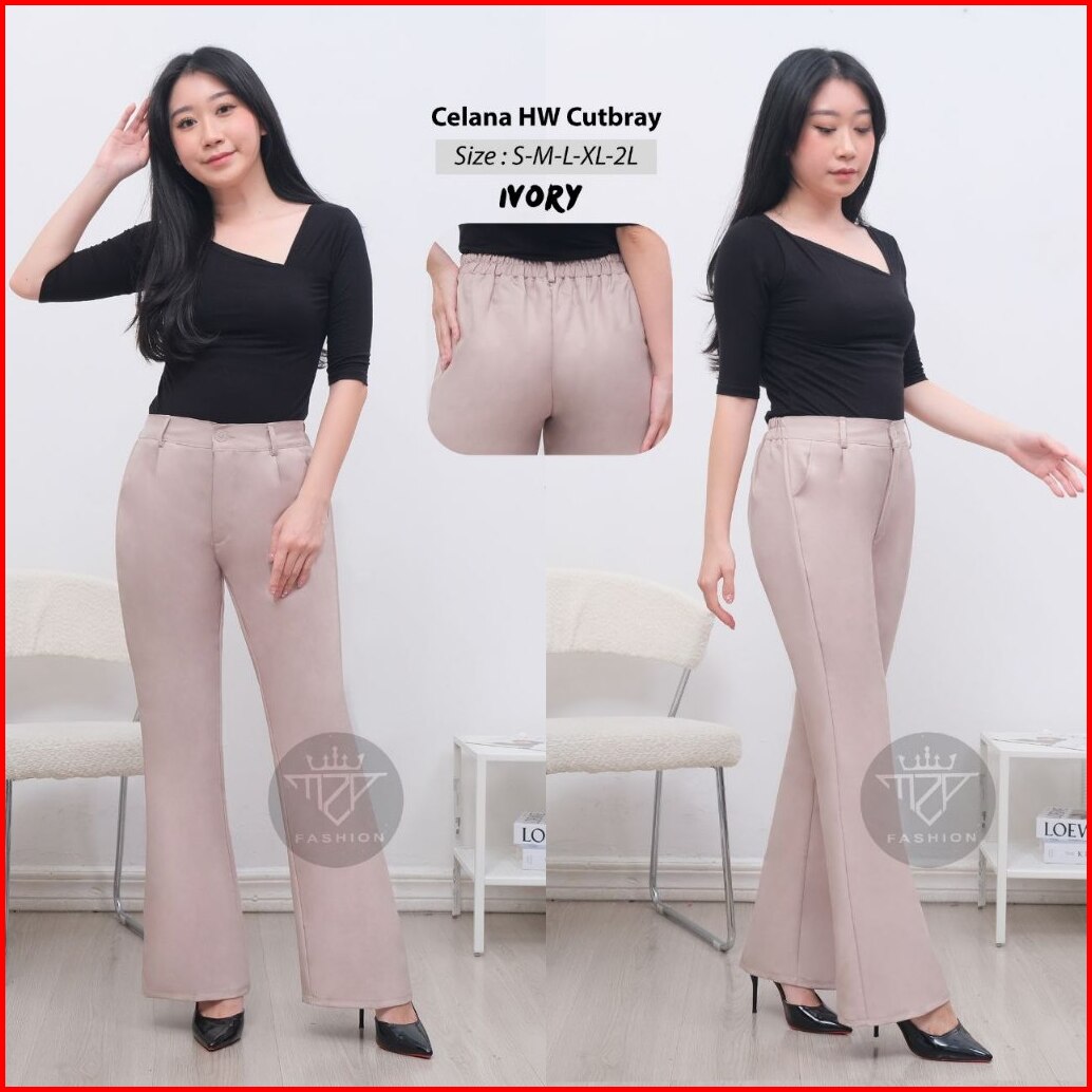 Cutbray Highwaist Pants Cutbray Flare Pants Wanita Celana Kantor Cutbray Wanita Terbaru Celana Kerja Cutbray Semiwoll