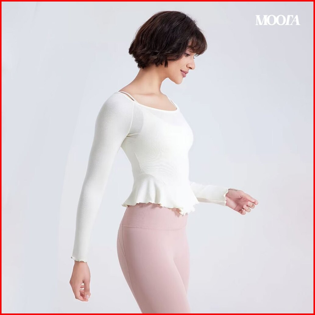 Sportwear Atasan Olahraga Ruffle Lengan Panjang Trendy Stylish Slim Fit Gym Pilates Yoga - 074