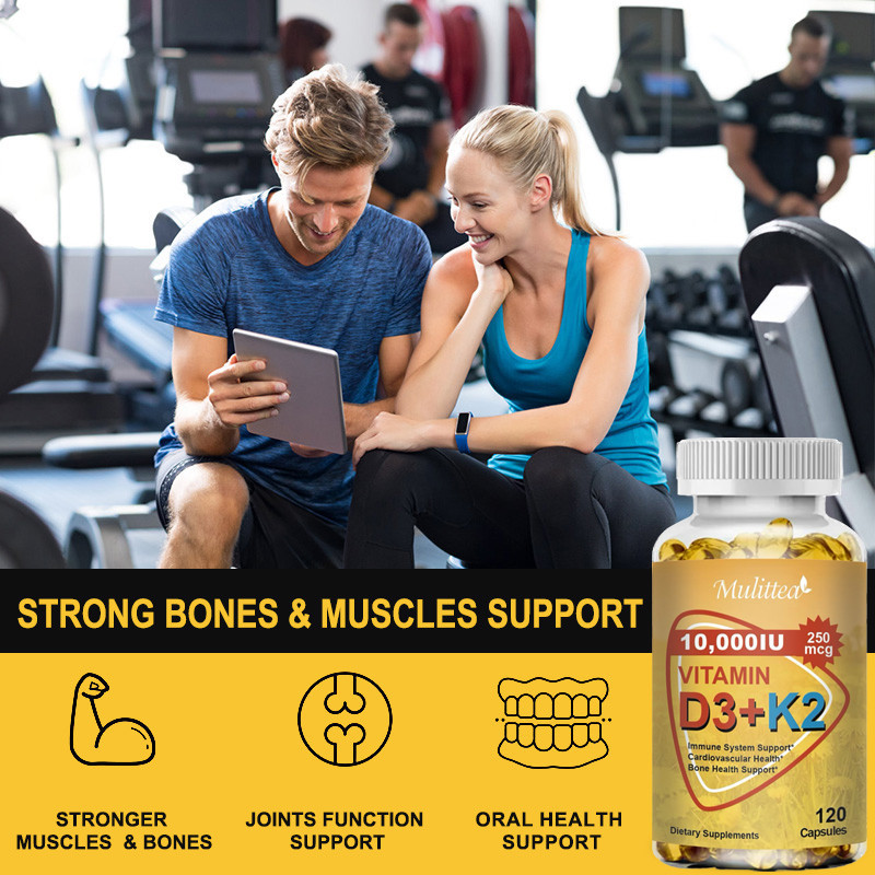 Mulittea 120pcs Vitamin D3 dengan vitamin K2 (mk7) Softgel untuk Meningkatkan Penyerapan Kalsium, Kesehatan Tulang & Sendi, Meningkatkan Kekebalan Tubuh