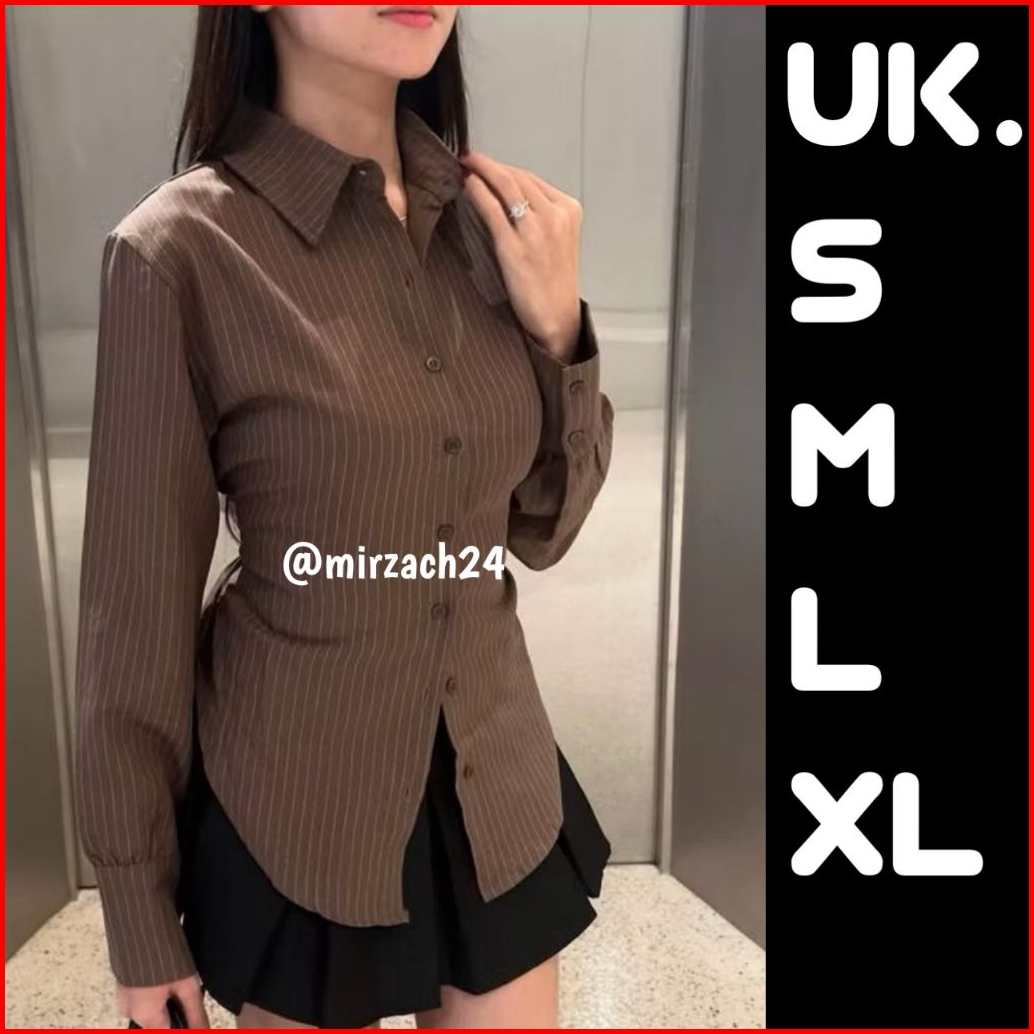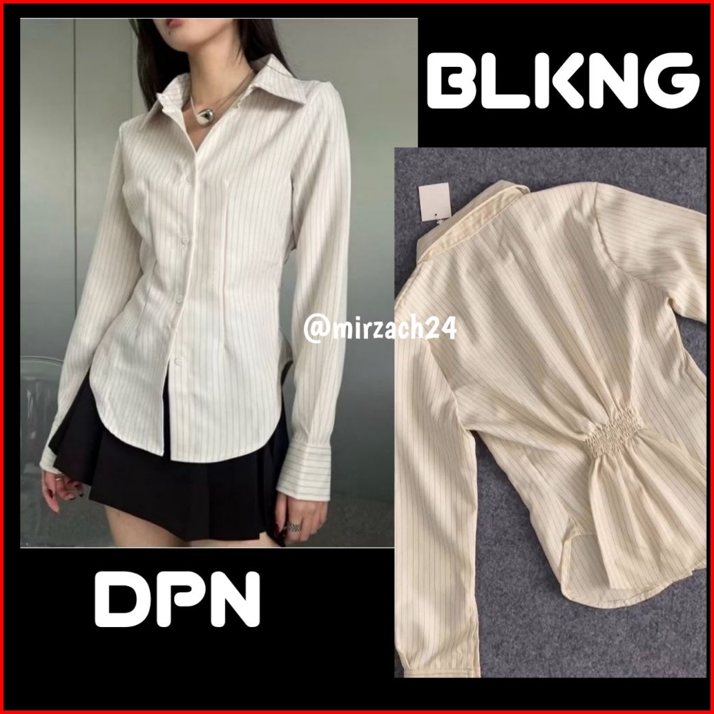 Luna Stripe Kemeja Fitted Wanita Atasan Salur Lengan Panjang Kantor