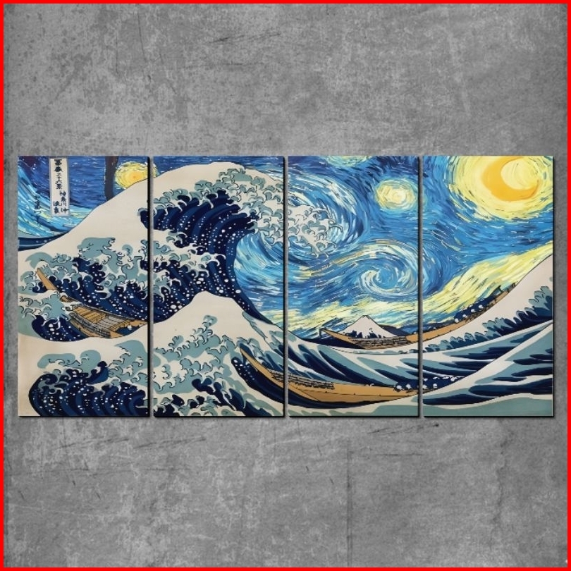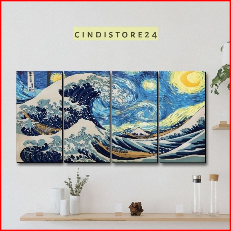 Hiasan Dinding Aesthetic Poster Kayu Wave Art Japan 1 Set - Wall Decor