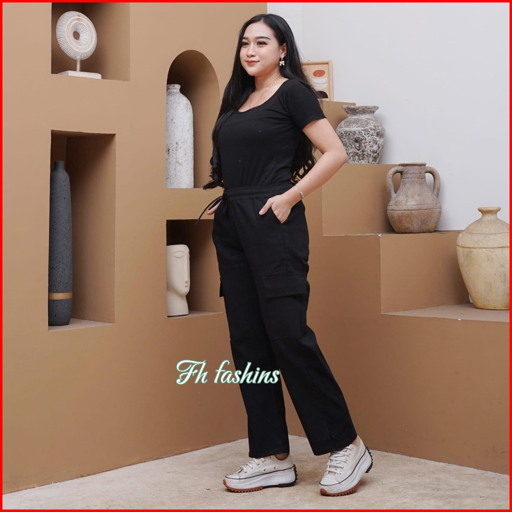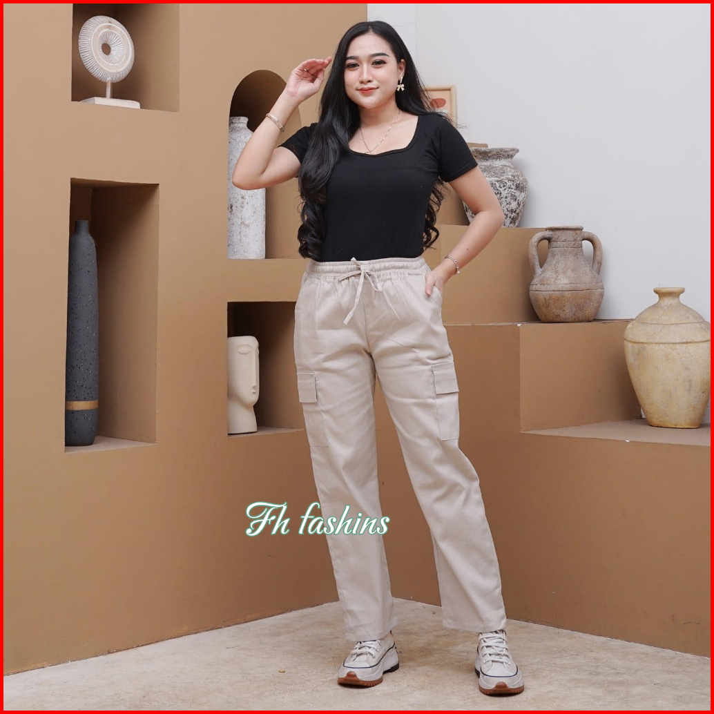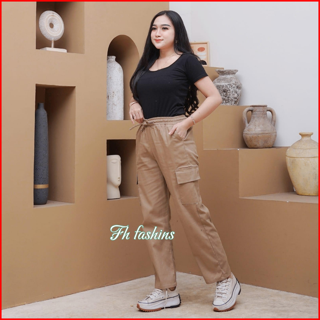 Fh Celana Panjang Cargo Wanita Highwaist Pant Standard Jumbo Bahan Katun Twill Combad