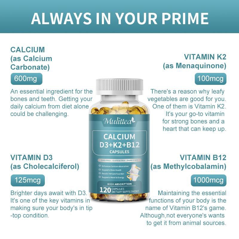 Mulittea Calcium Vitamin D3 + K2 + B12 isi 120 Softgel
