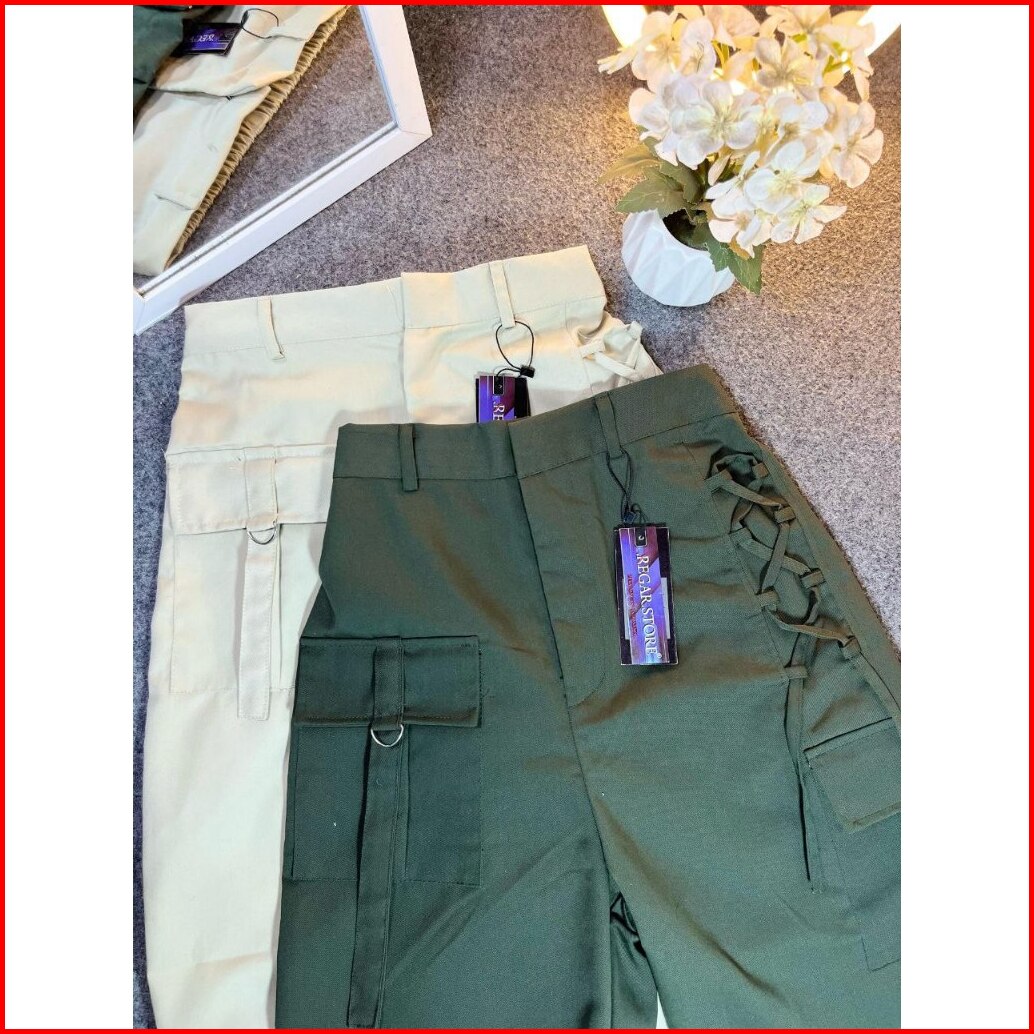 Celana Culotte Cargo Katun Drill Kulot Cargo Wanita Highwaist Kekinian Dengan 3 Saku Tali Samping