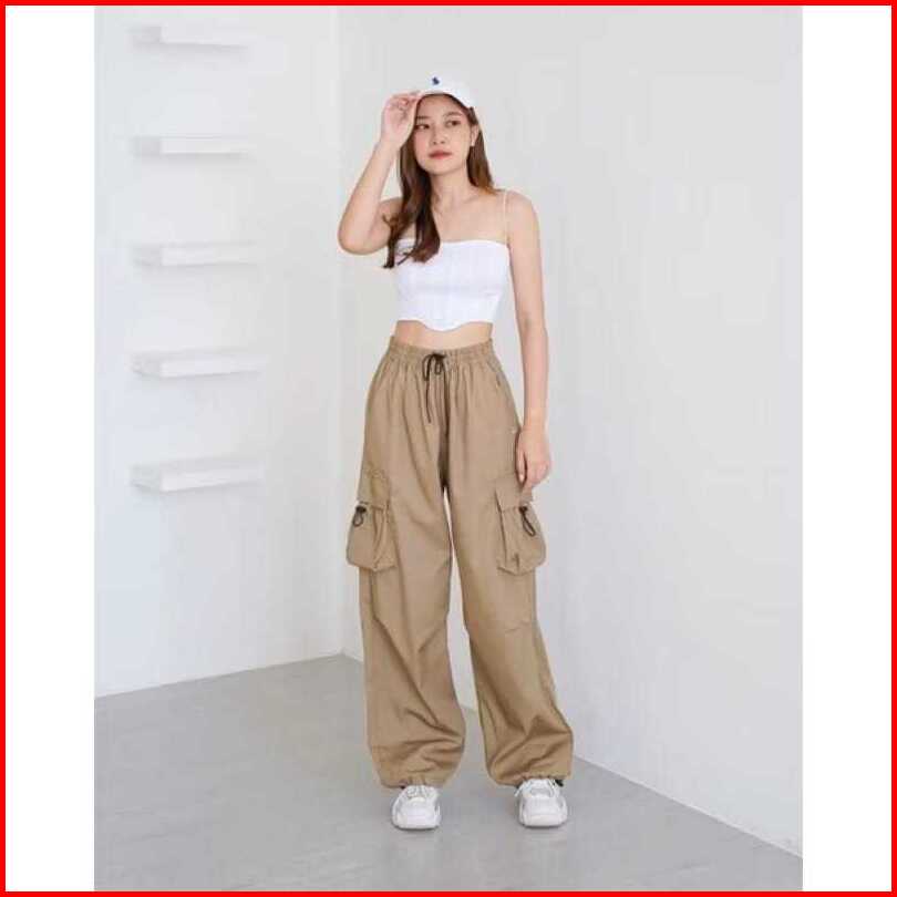 Kiya Cargo Pants Wanita Highwaist Loose Korean Style Jumbo - Celana Kargo Wanita Terbaru