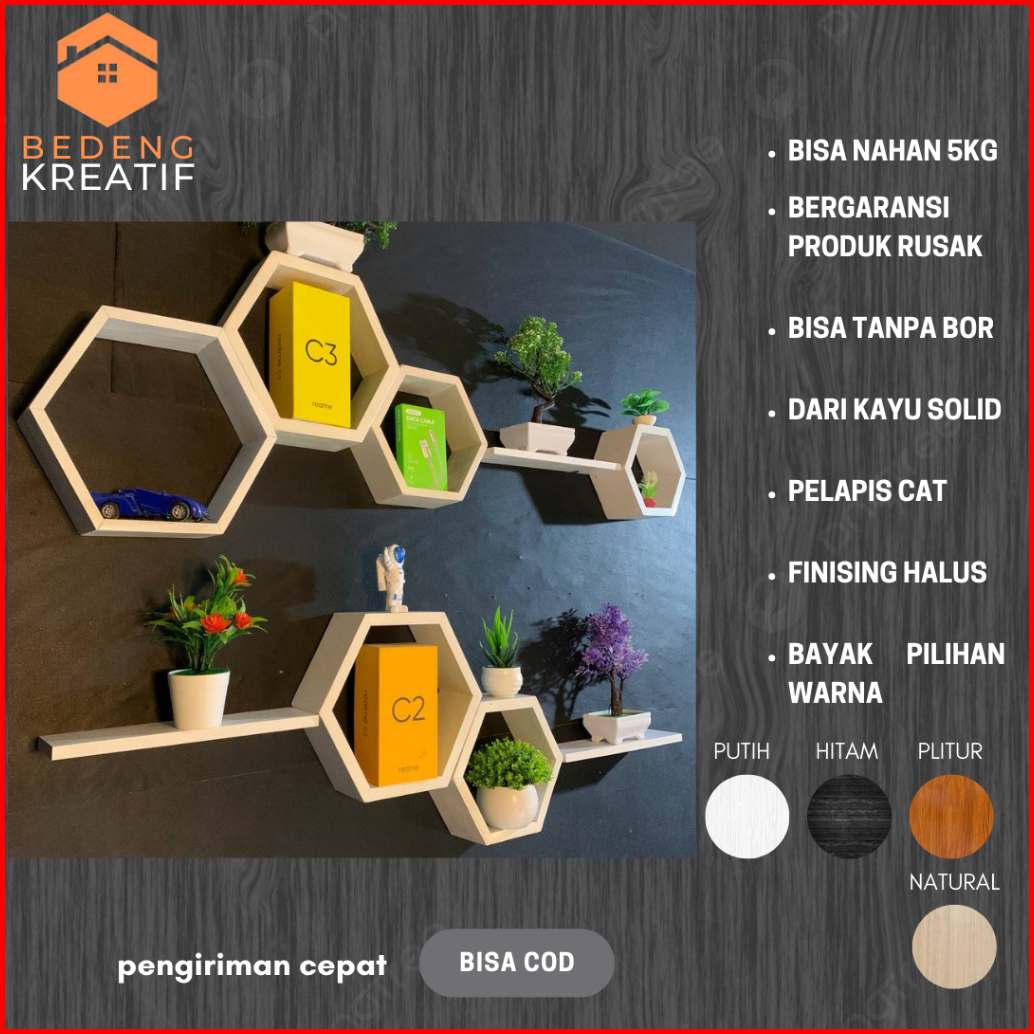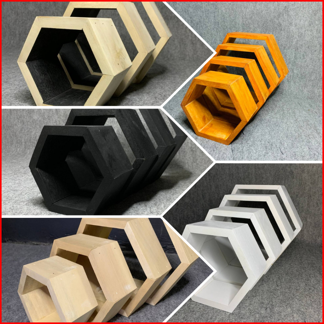 Hiasan Dinding Kamar Esthetic Rak Hexagonal 1 Set Ambalan Ruangan Tamu Hexsagonal Tanpa Bor