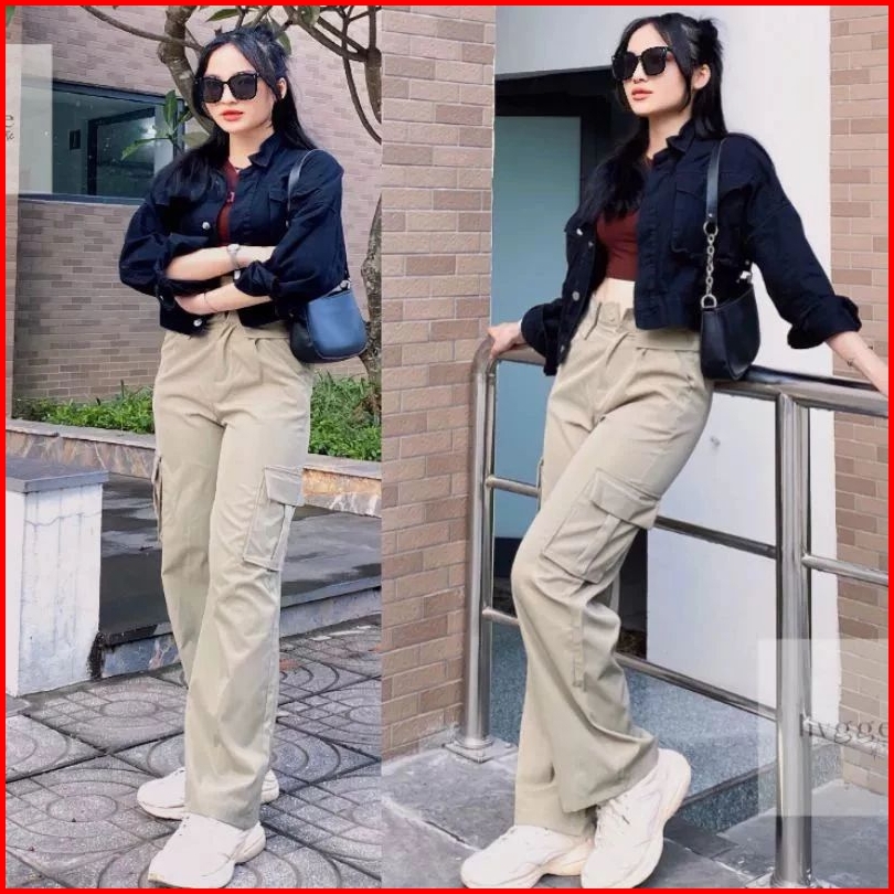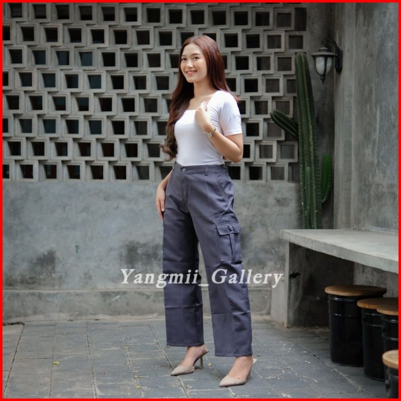 Celana Cargo Pants Wanita Kulot Kargo Premium Highwaist